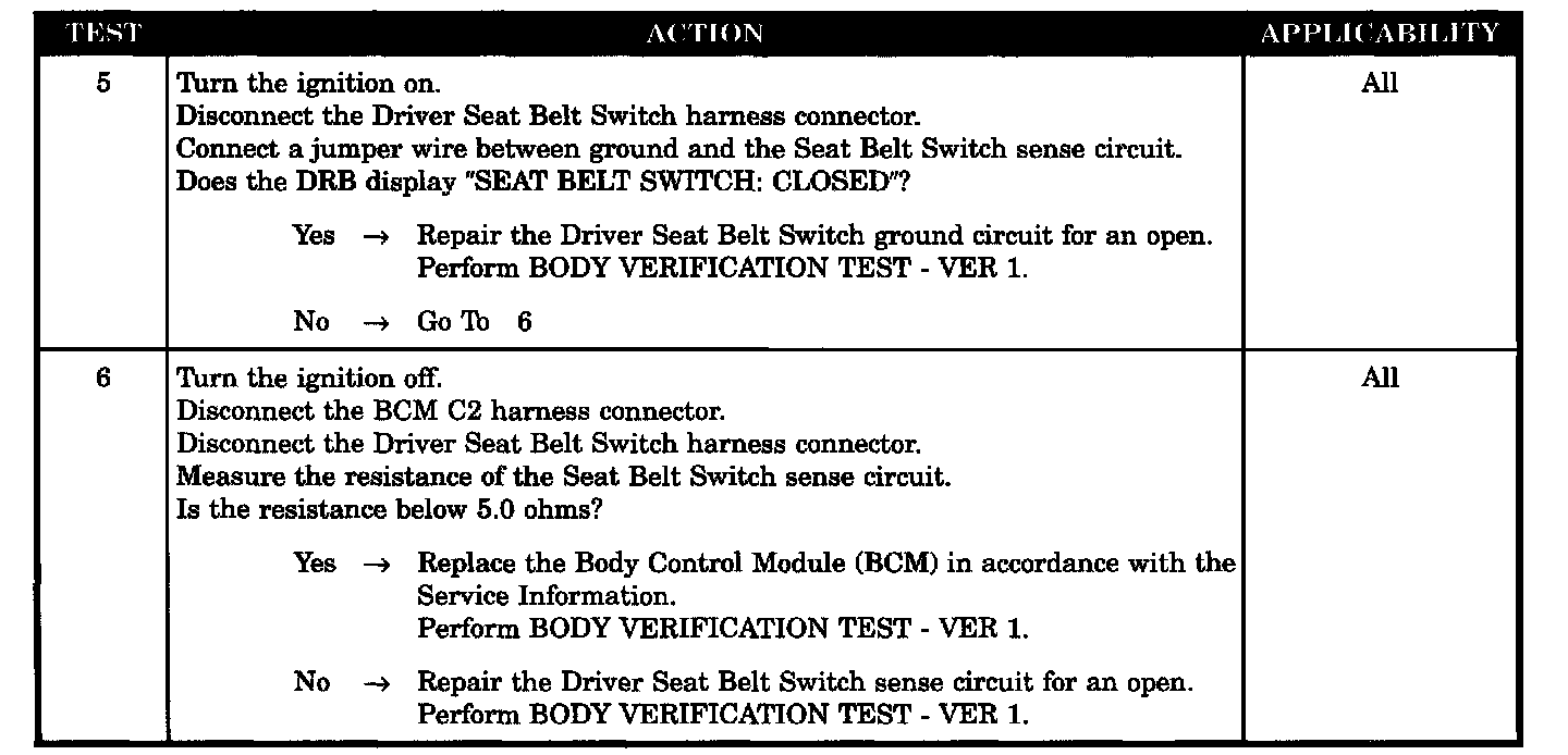 - Seat Belt Switch ground circuit open