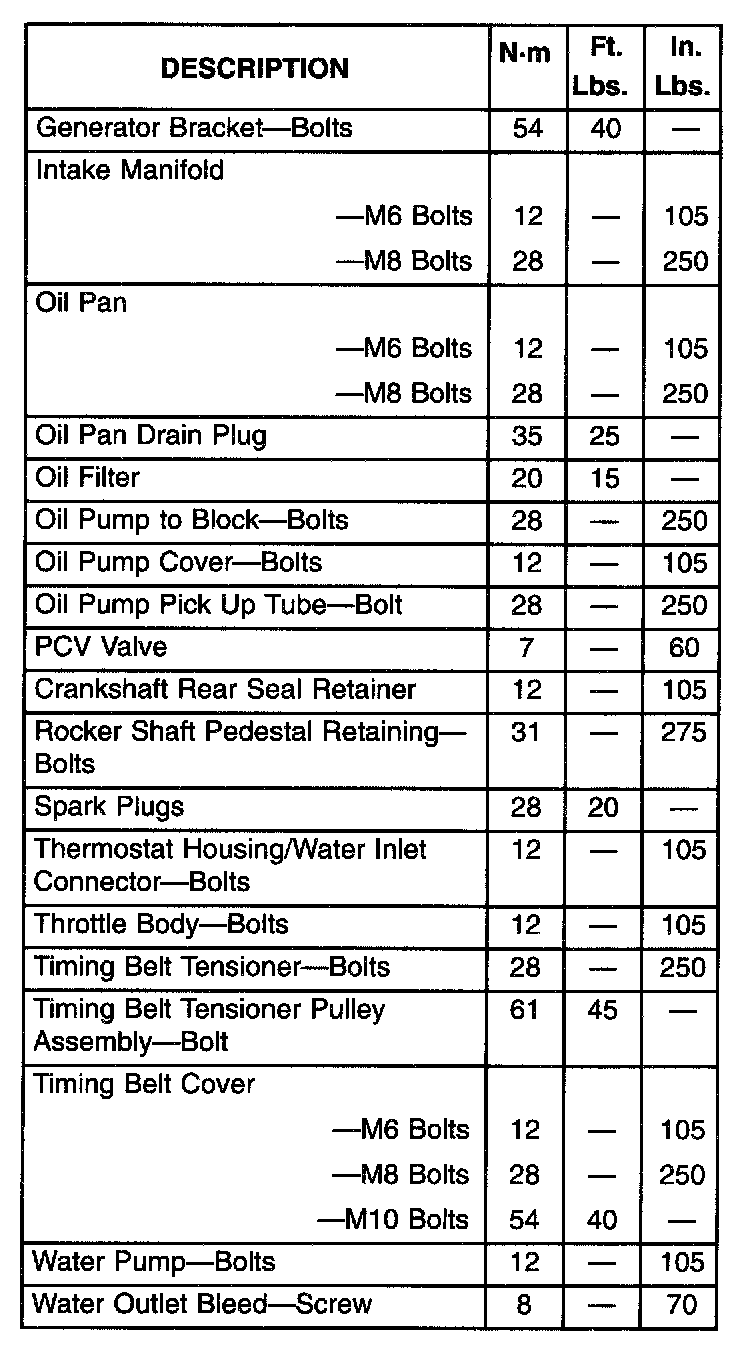 Torque Specifications