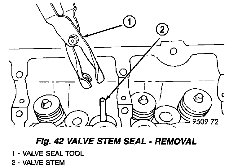 2. Remove valve stem seals by using a valve stem seal tool (Fig. 42).