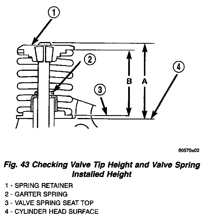 CAUTION: Do not remove garter spring around the seal at the top of the valve stem seal (Fig. 43).