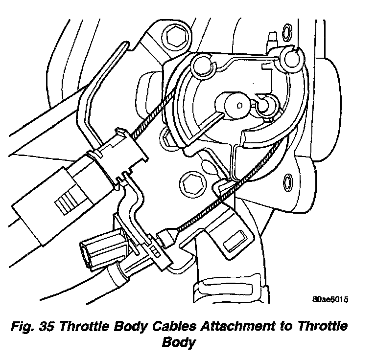 Fig. 35 Throttle Body Cable Attachment To Throttle Body: