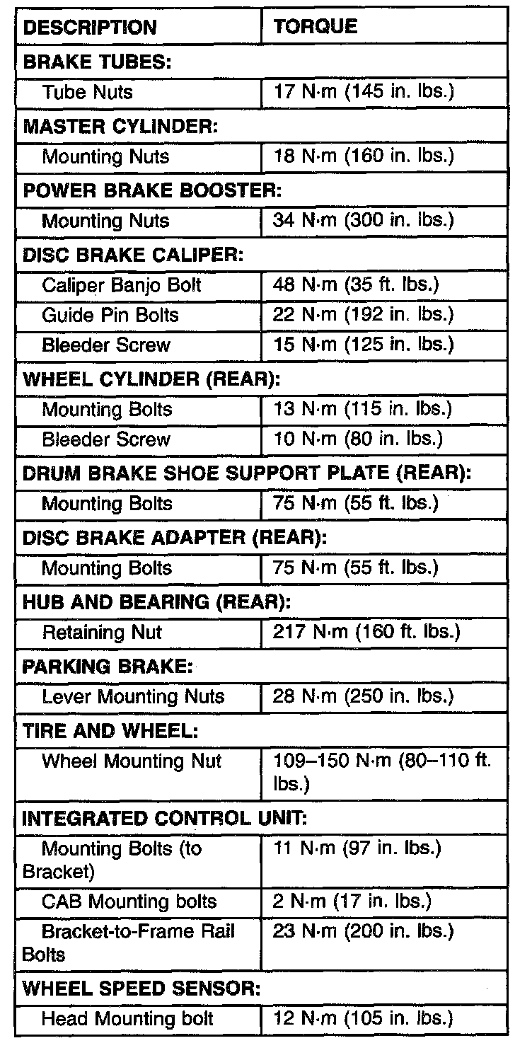 Torque Specifications