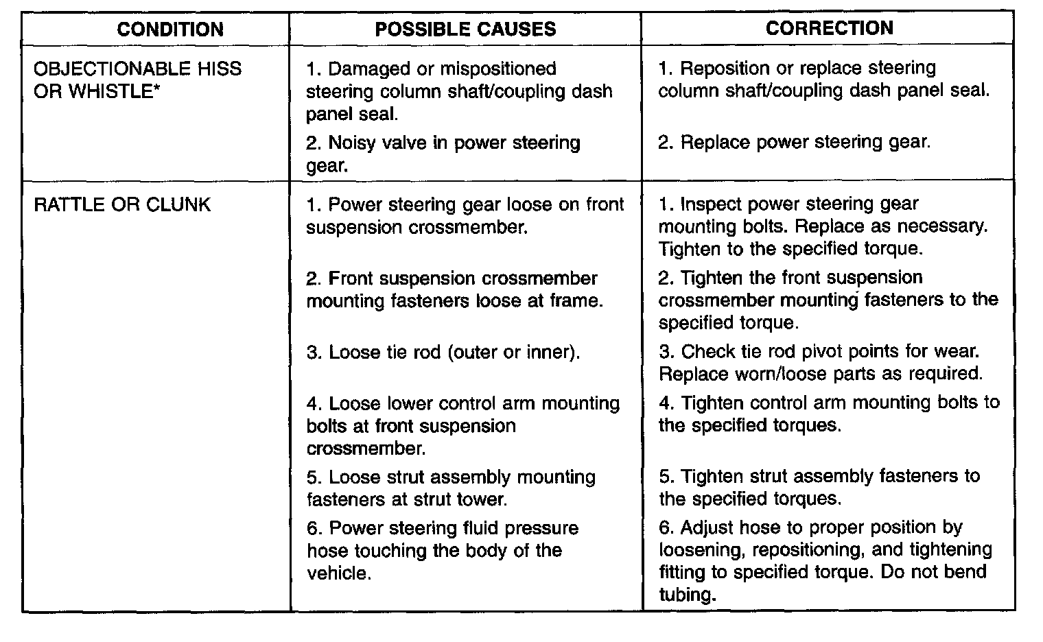 NOTE: * There is some noise in all power steering systems. One of the most common is a hissing sound evident when turning the steering wheel when at a standstill or when parking and the steering wheel is at the end of its travel. Hiss is a very high frequency noise similar to that experienced while slowly closing a water tap. The noise is present in every valve and results when high velocity fluid passes valve orifice edges. There is no relationship between this noise and the performance of the steering system.