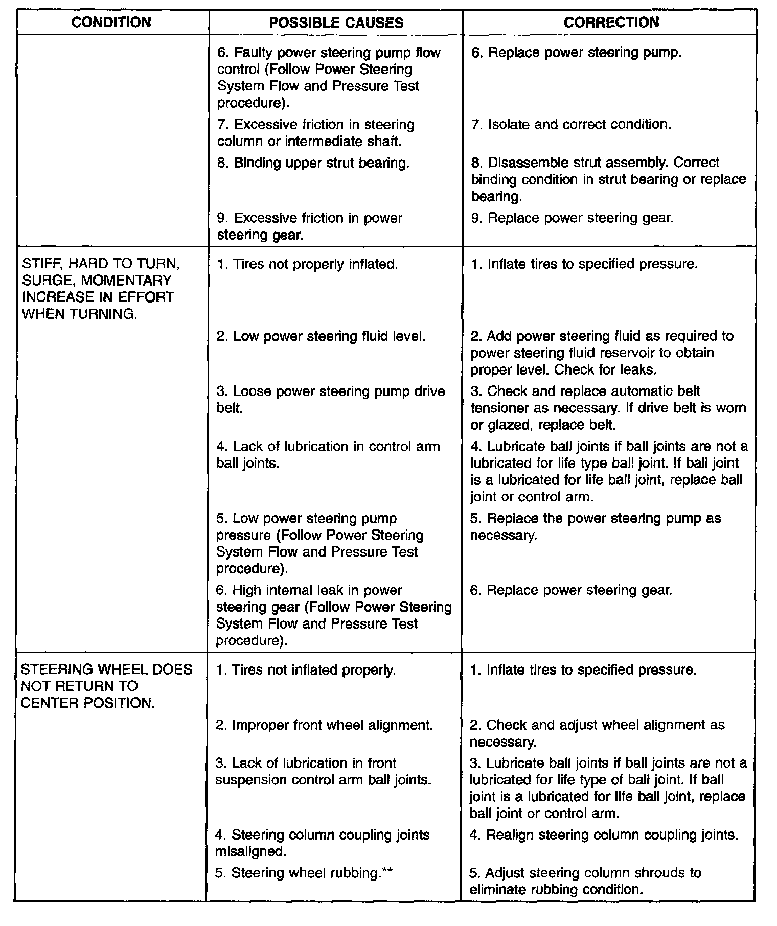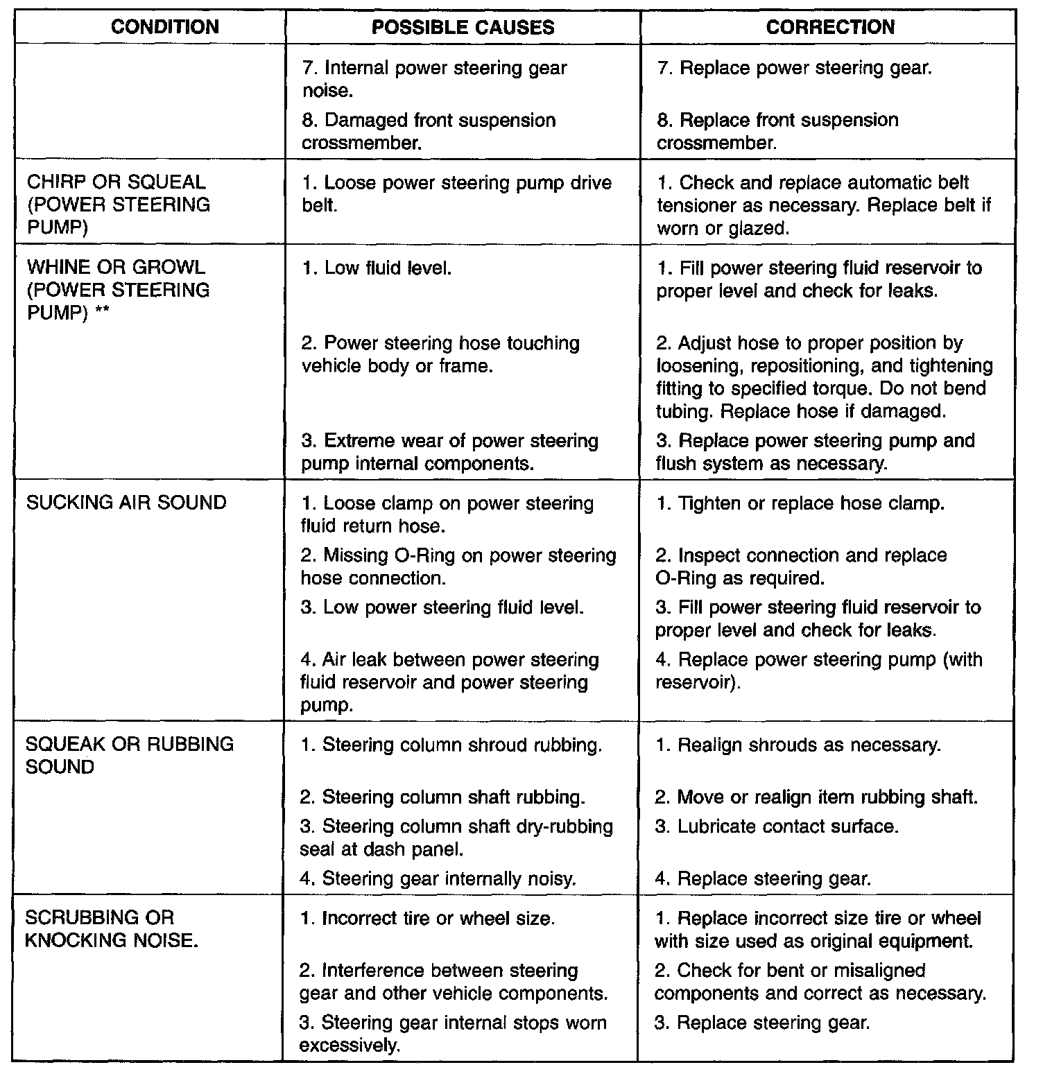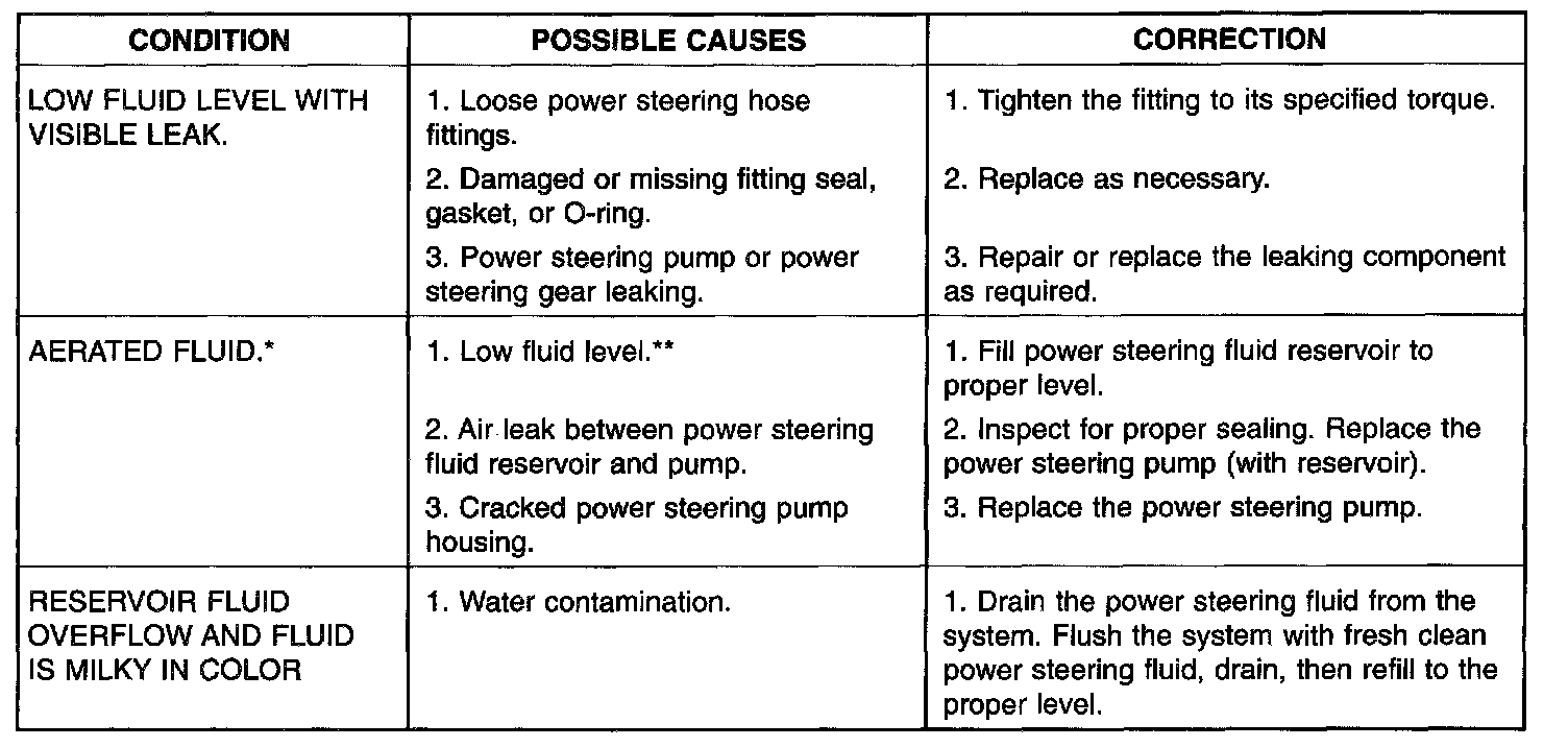 NOTE: ** Extremely cold temperatures may cause power steering fluid aeration, if the power steering fluid is low.