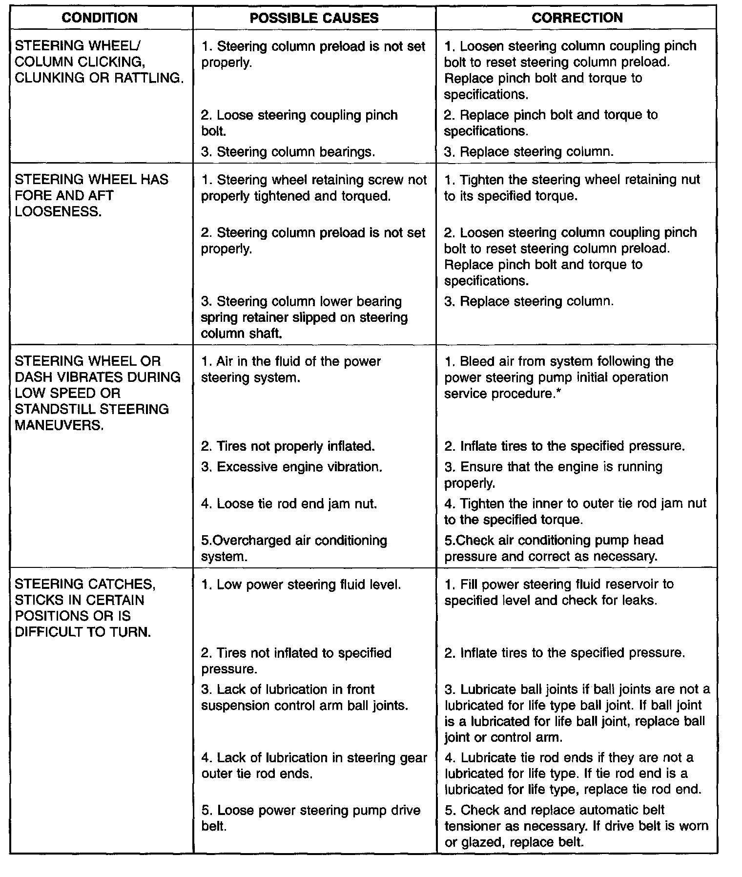 NOTE: * Steering shudder can be expected in new vehicles and vehicles with recent steering system repairs. Shudder should dissipate after the vehicle has been driven several weeks.