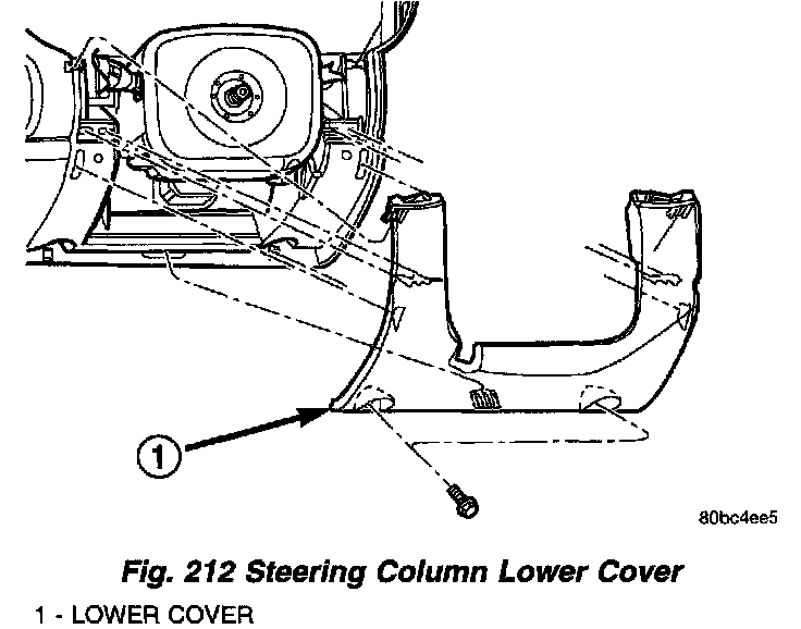 3. Install steering column upper and lower shrouds (Fig. 213).
