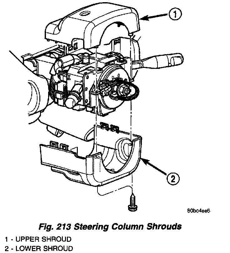 2. Remove the steering column upper and lower shrouds (Fig. 213).