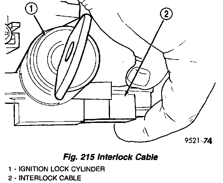 4. Grasp the interlock cable and connector firmly. Remove the interlock cable (Fig. 215).