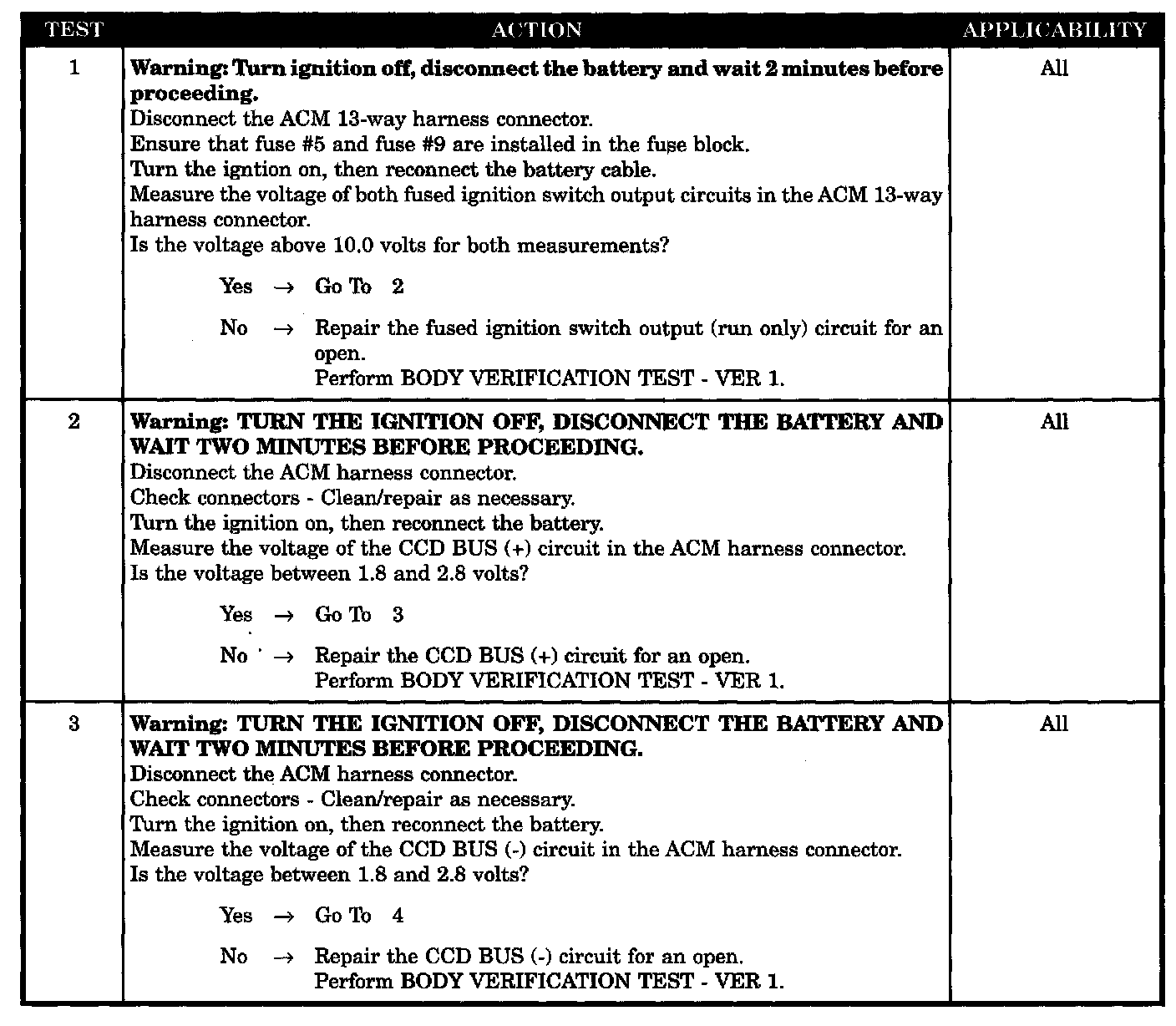 - CCD bus (+) open to ACM