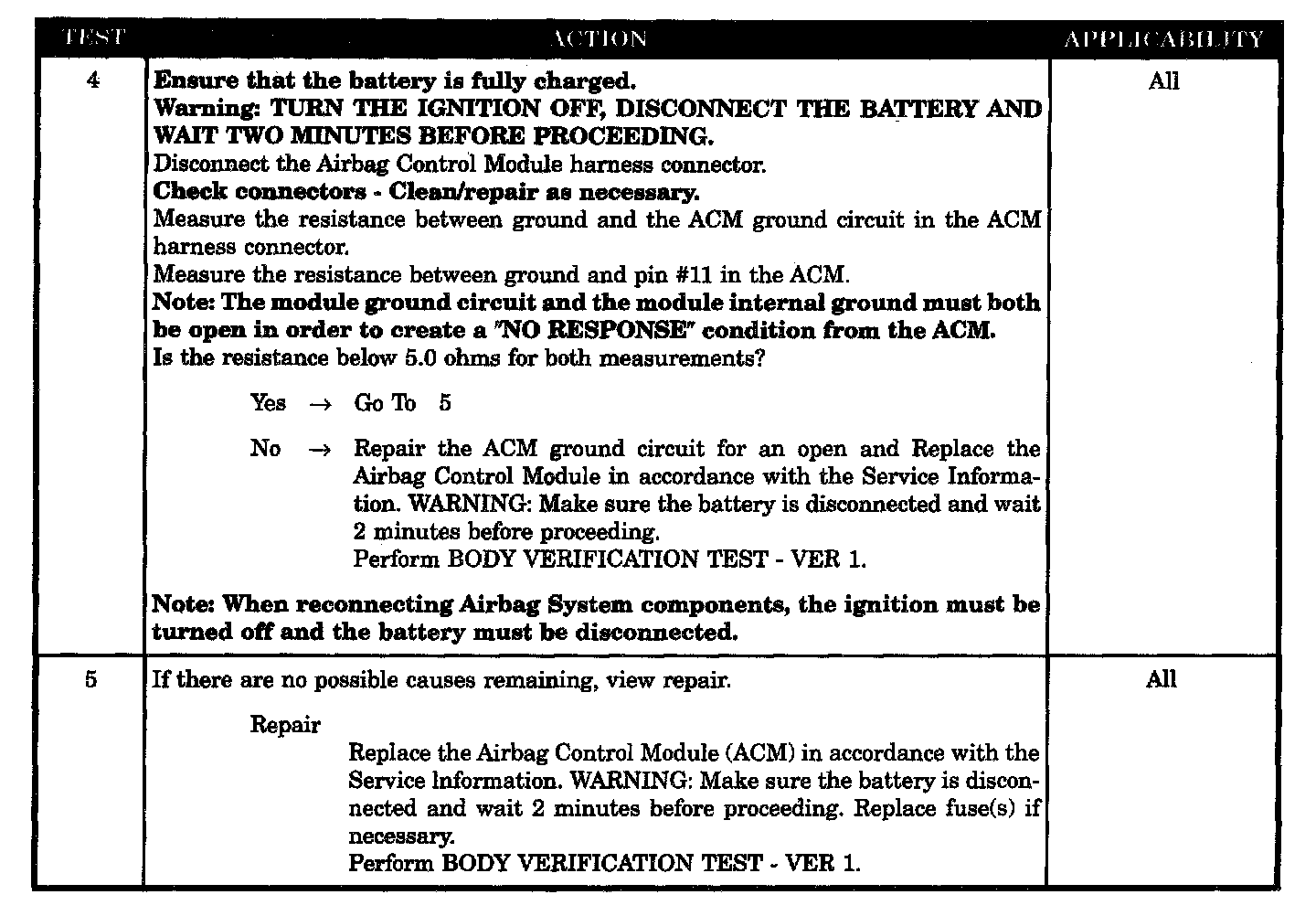 No Response From Airbag Control Module
