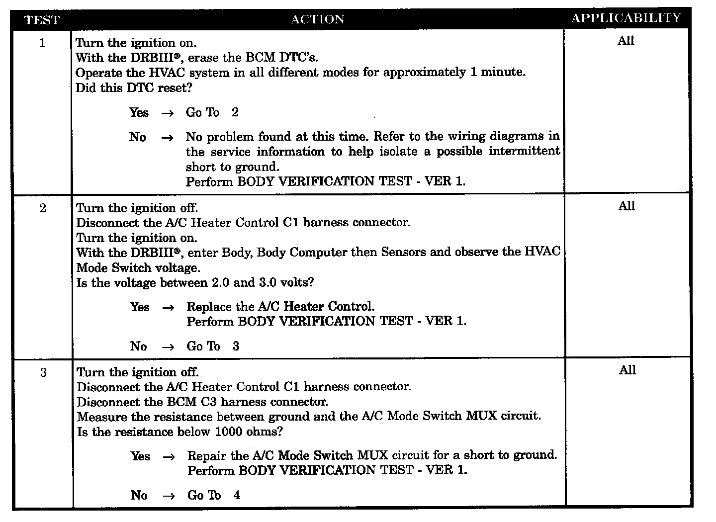A/C MODE SWITCH MUX SHORTED TO GROUND