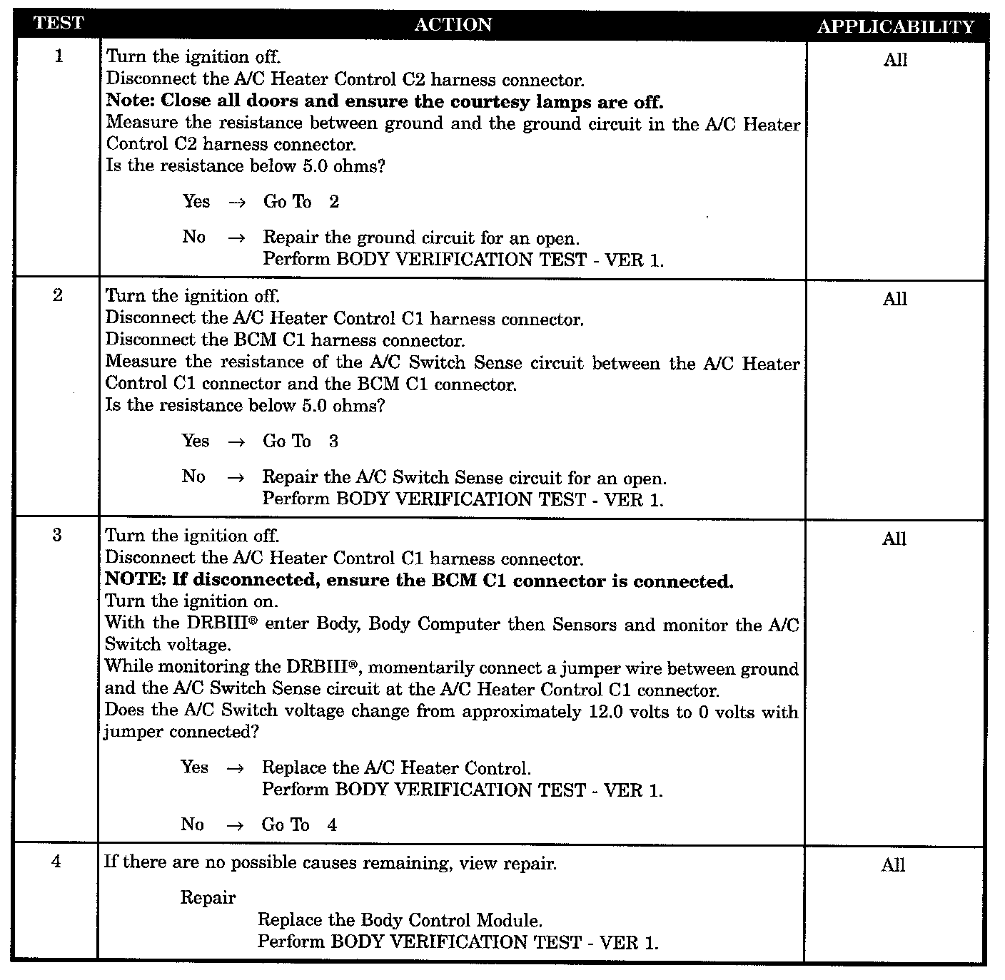 A/C Select Switch Inoperative