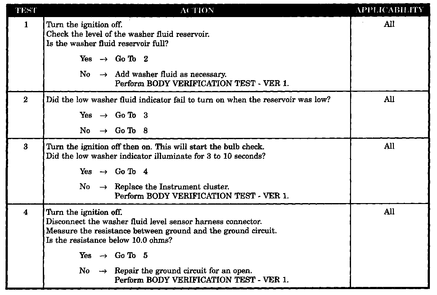 - Open washer fluid switch sense circuit