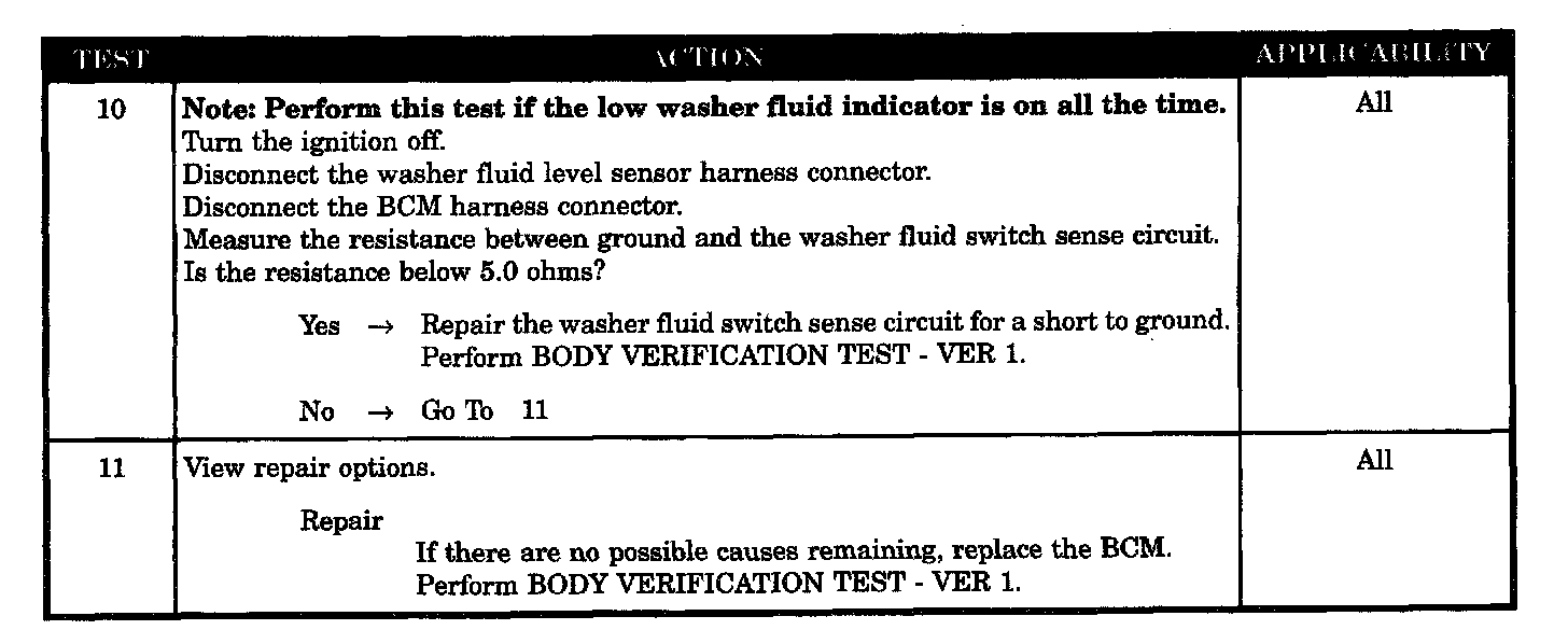 - Washer fluid switch sense circuit shorted to ground