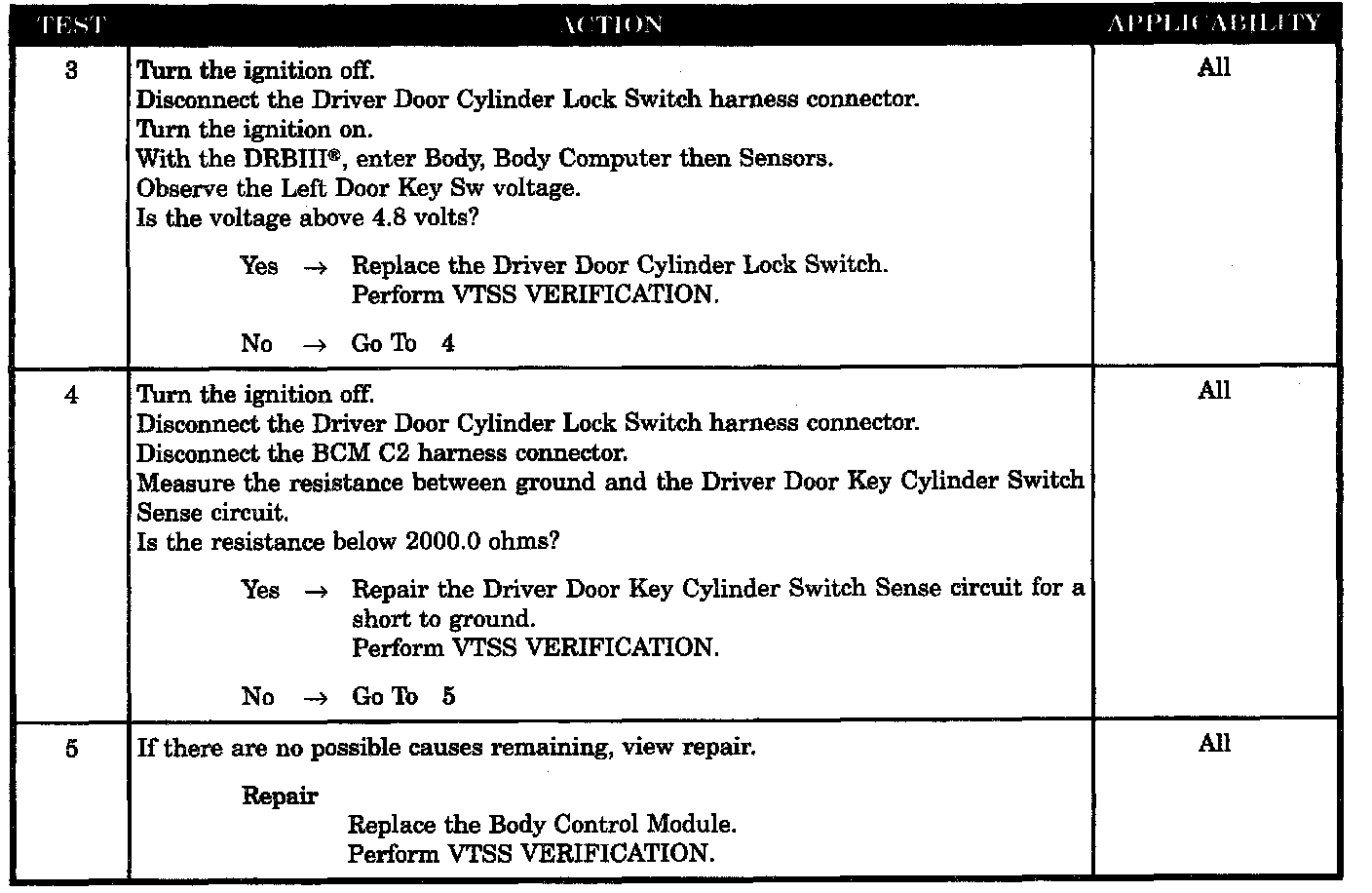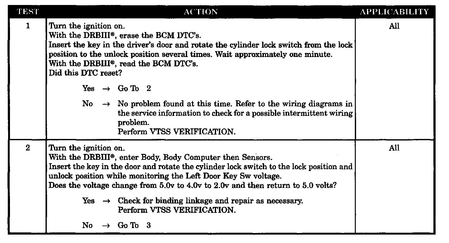 LEFT DOOR KEY CYLINDER SWITCH FAILURE