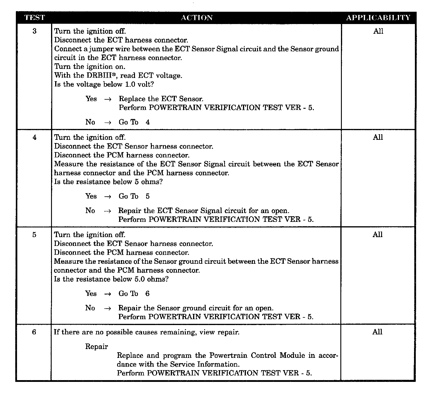 - ECT sensor signal circuit open