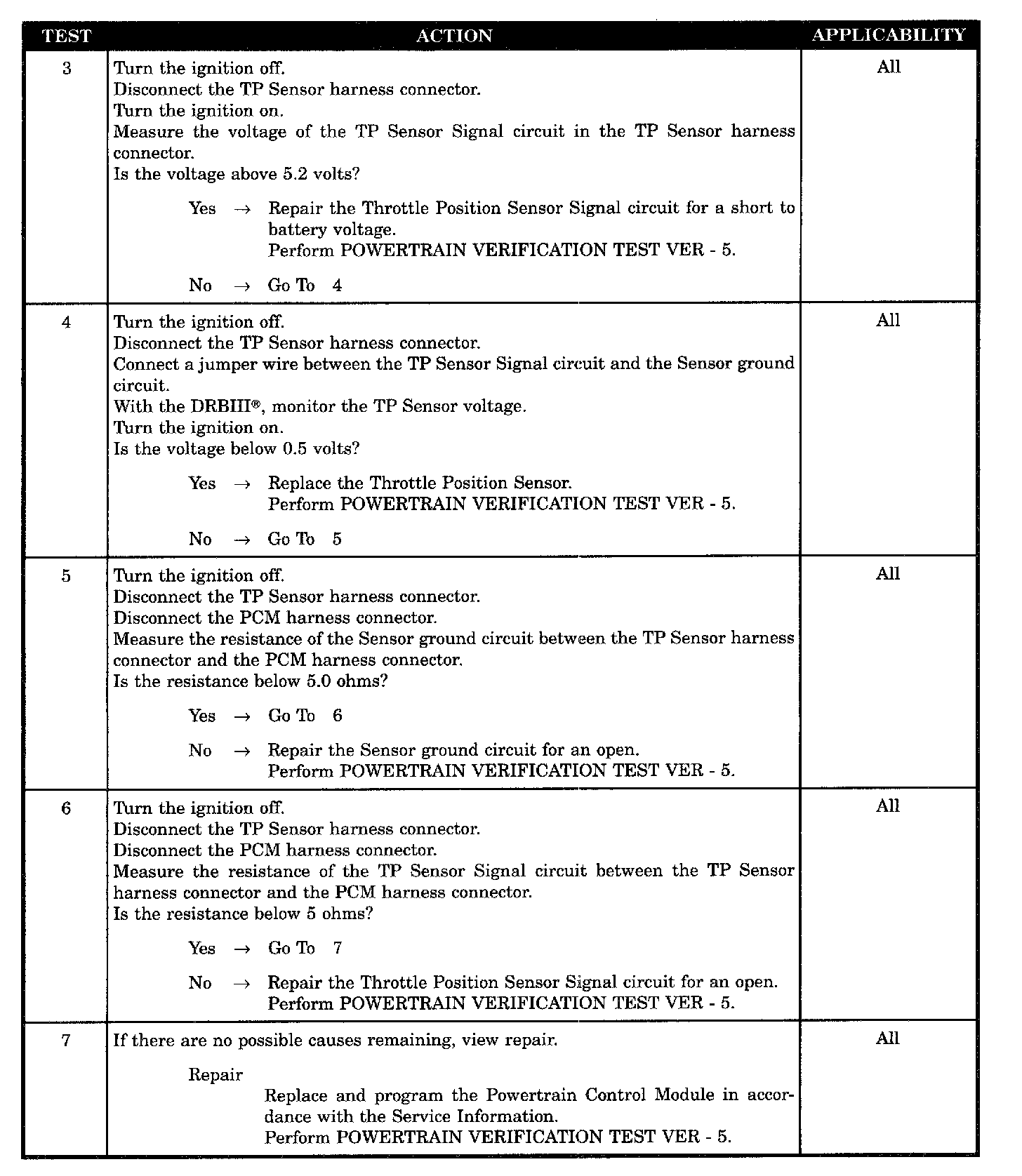 - TP sensor signal circuit shorted to 5 volt supply circuit