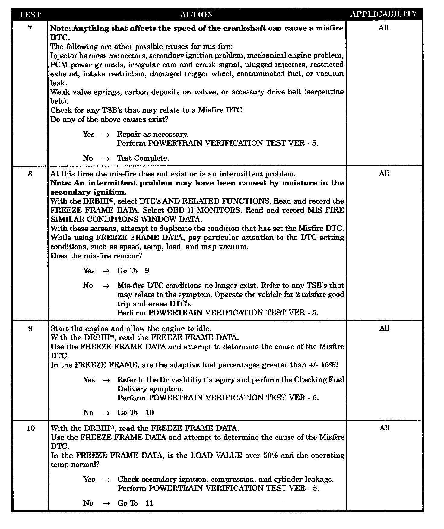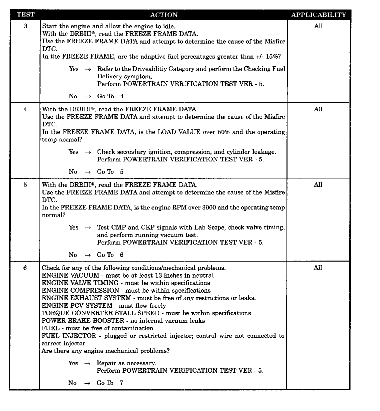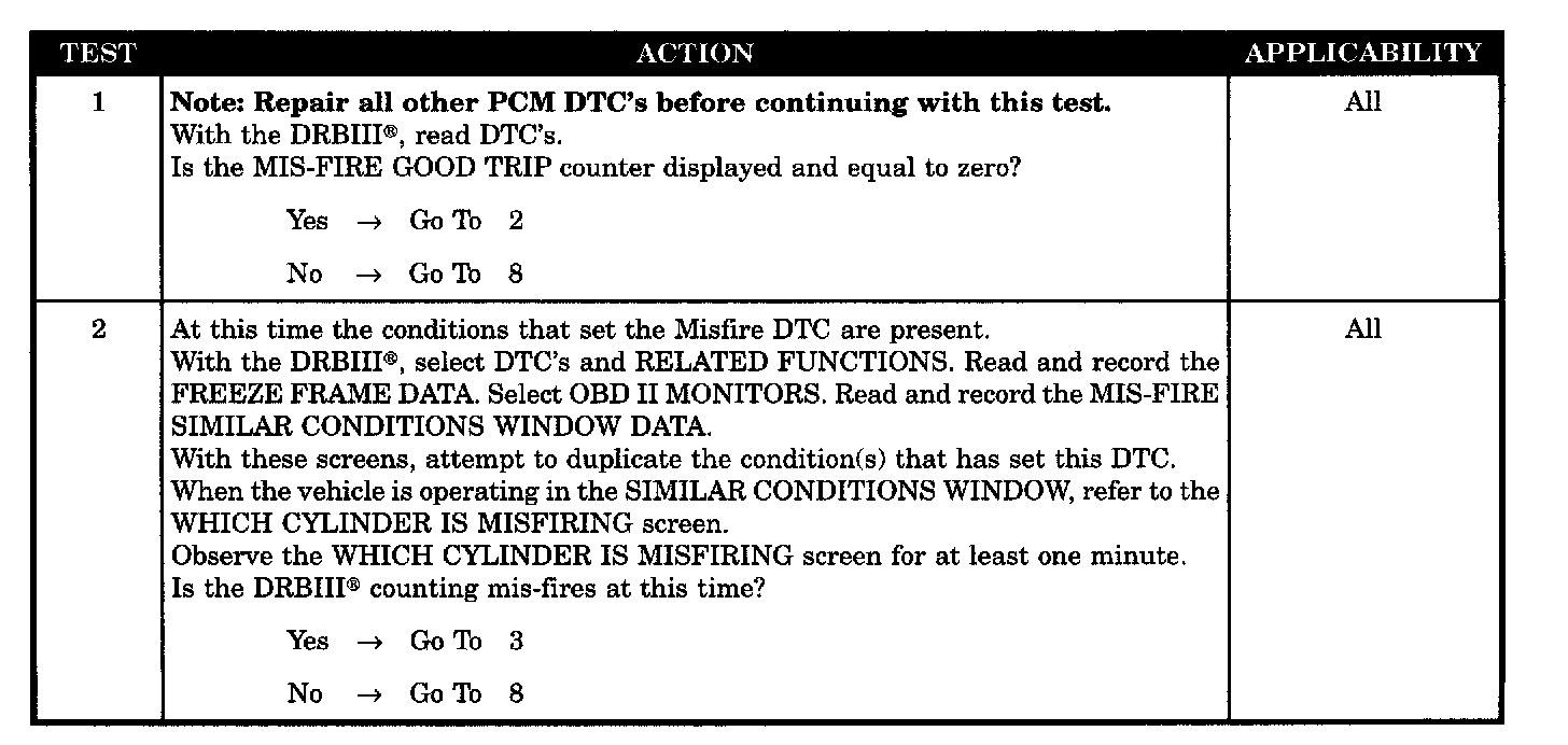 When more than a 2% (2.5% LEV) misfire rate is measured during two trips, or with a 10% to 30% misfire rate during one trip.