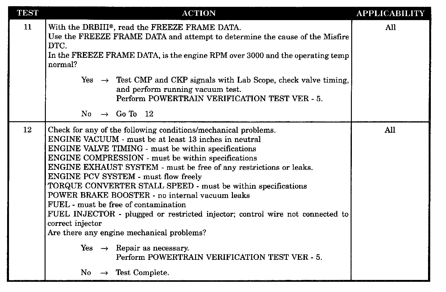 This symptom is diagnosed using the test P0300 - MULTIPLE CYLINDER MISFIRE.