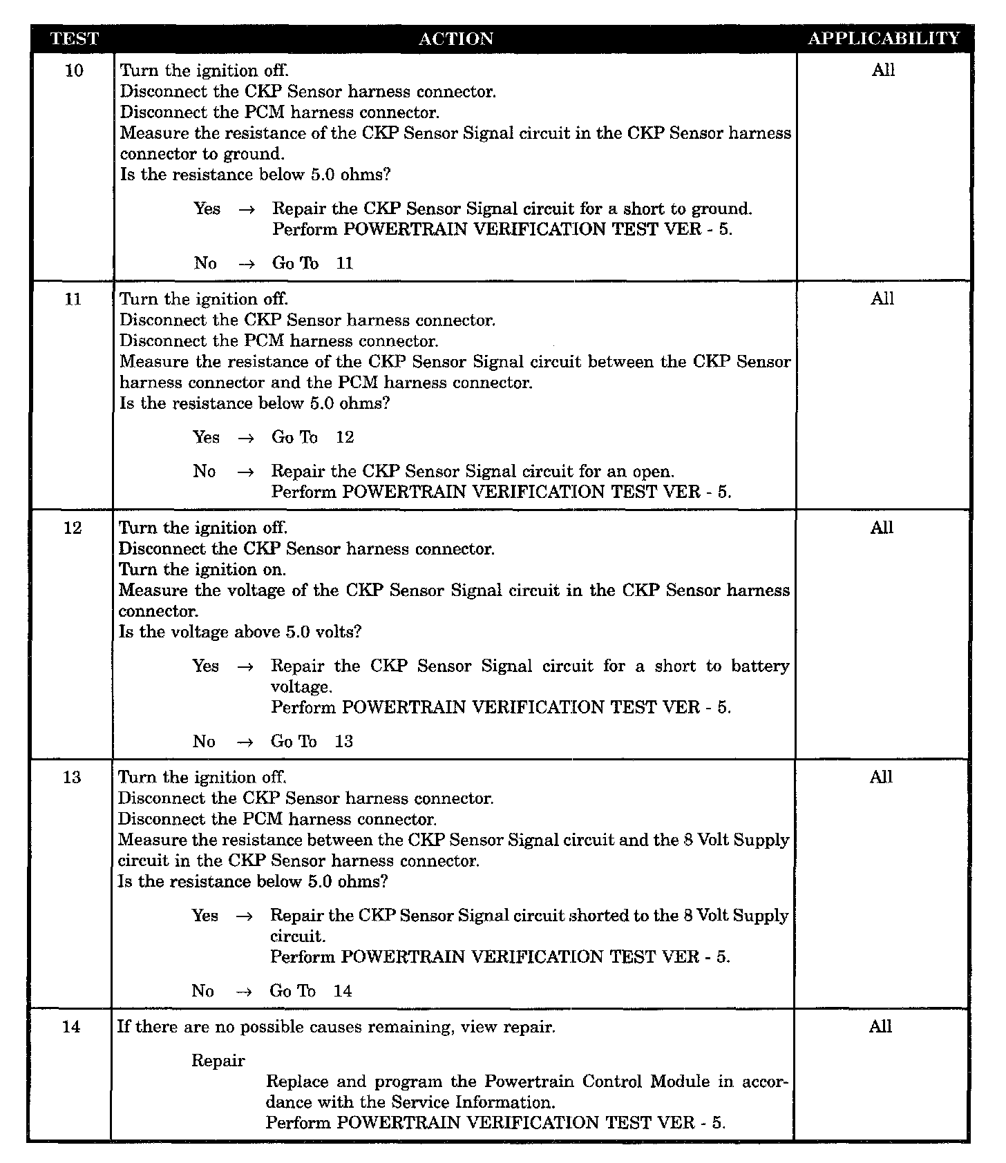 - CKP sensor signal circuit shorted ground