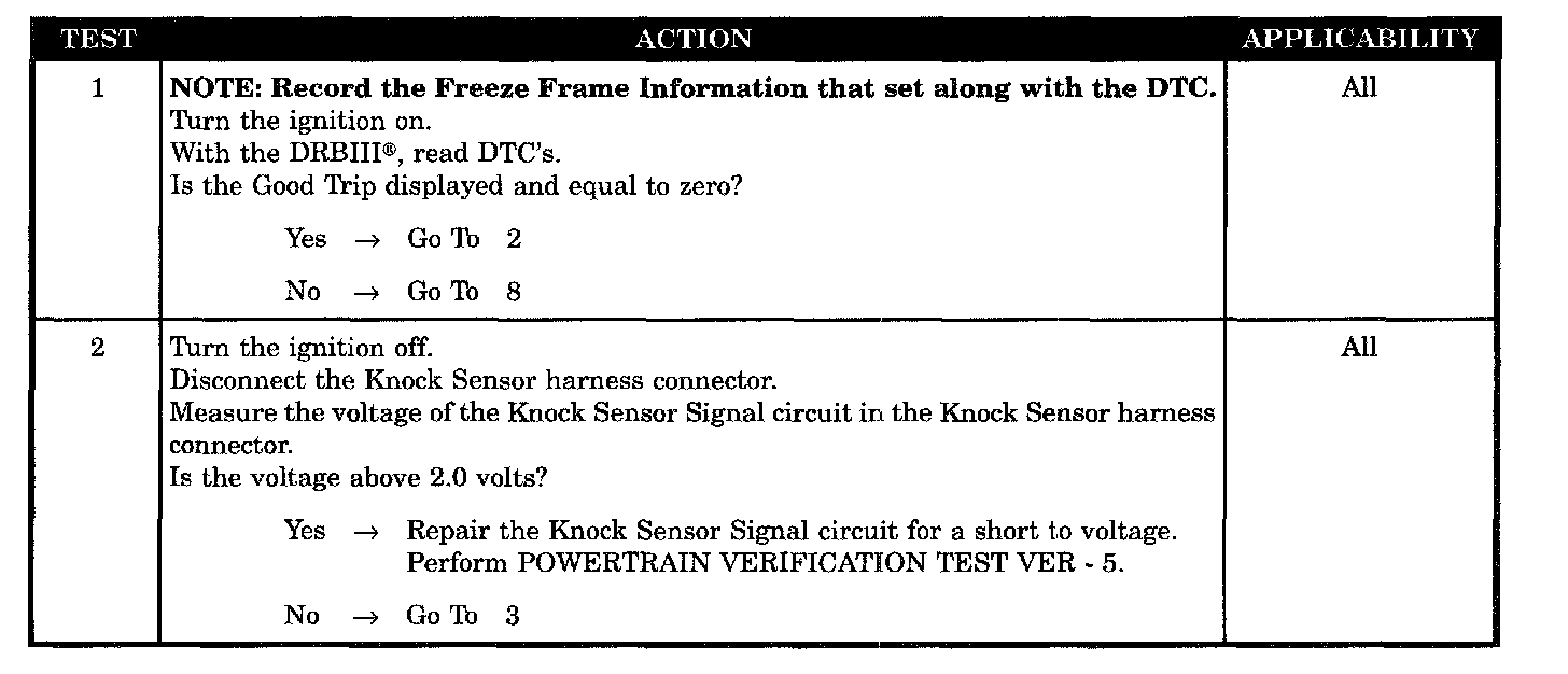 - Knock sensor signal circuit shorted to ground