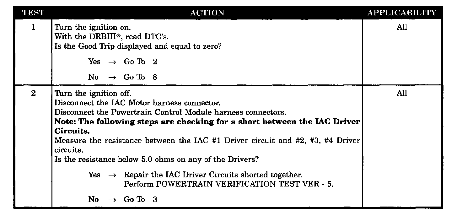 - IAC # 1 driver circuit shorted to # 2, # 3, or # 4