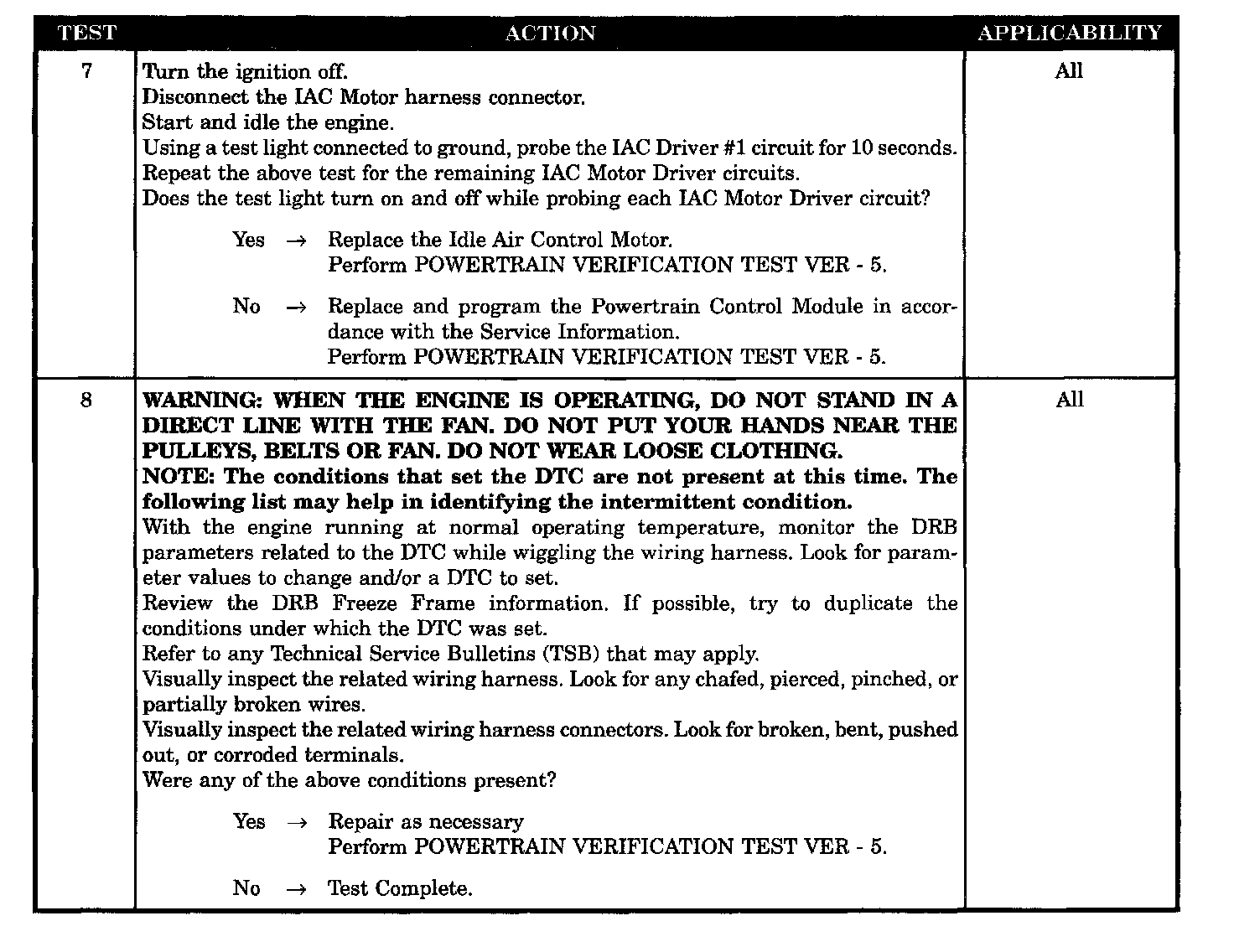 The PCM senses a short to ground or battery voltage on any of the four Idle Air Control (IAC) driver circuits for 2.75 seconds while the IAC motor is active.