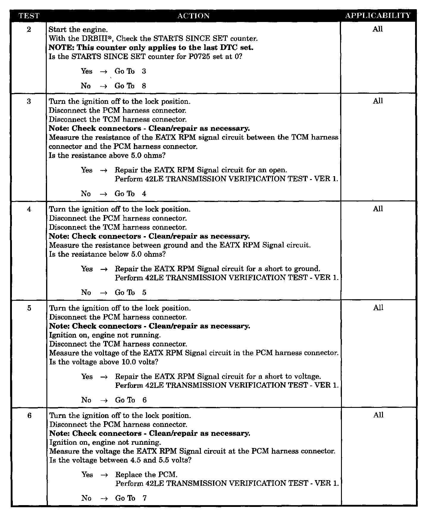 When Monitored and Set Condition: P0725 - ENGINE SPEED SENSOR CIRCUIT