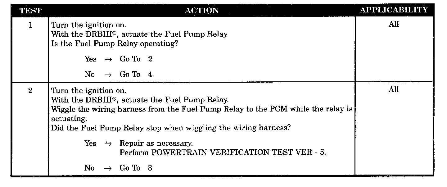 - Fuel pump relay control circuit short to ground