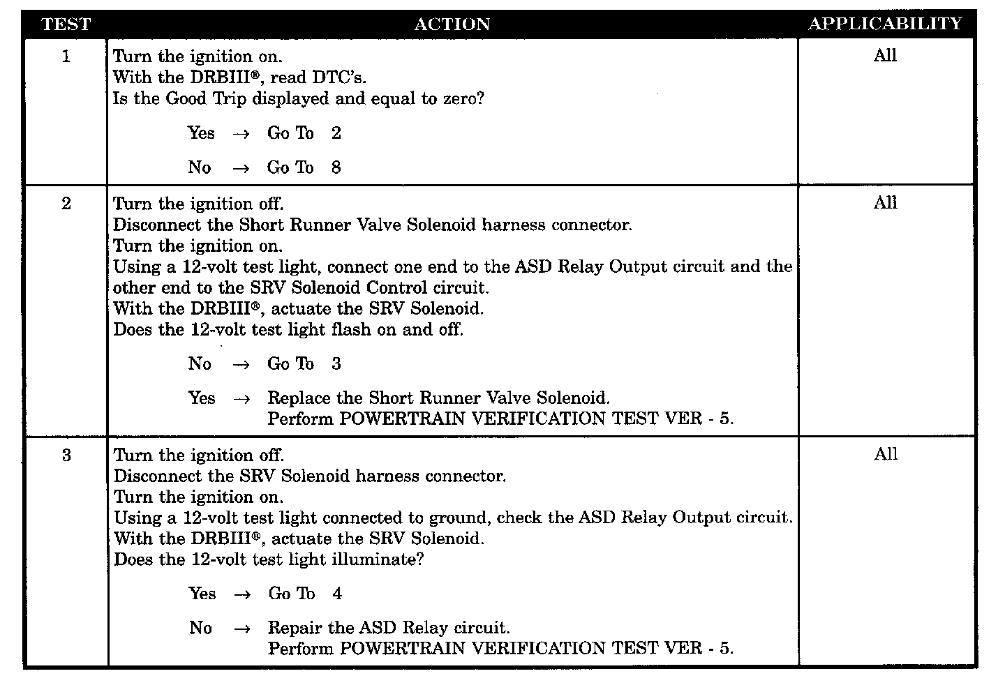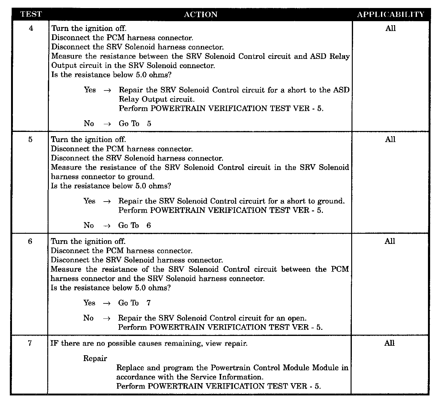 - SRV solenoid control circuit shorted to ASD relay output circuit