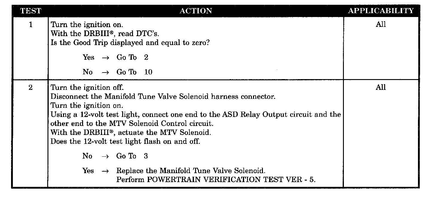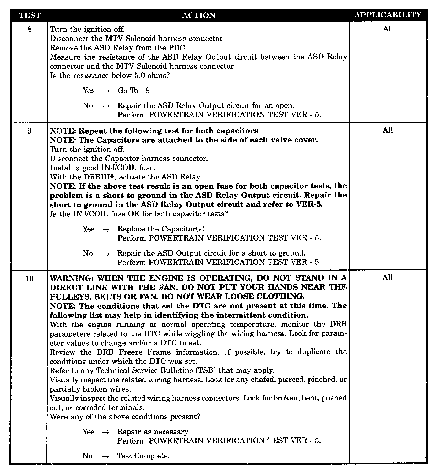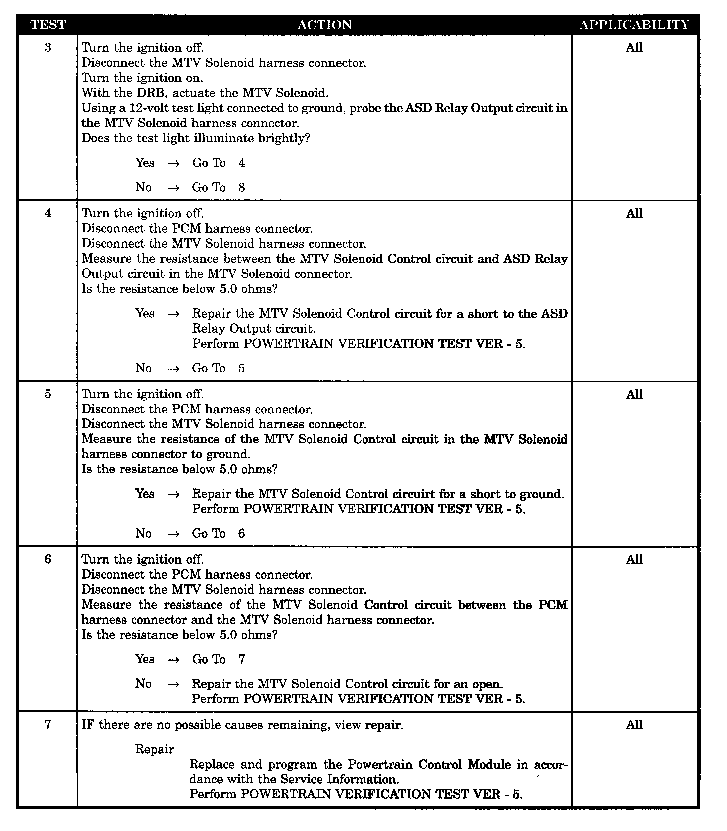 - MTV solenoid control circuit shorted to ASD relay output circuit