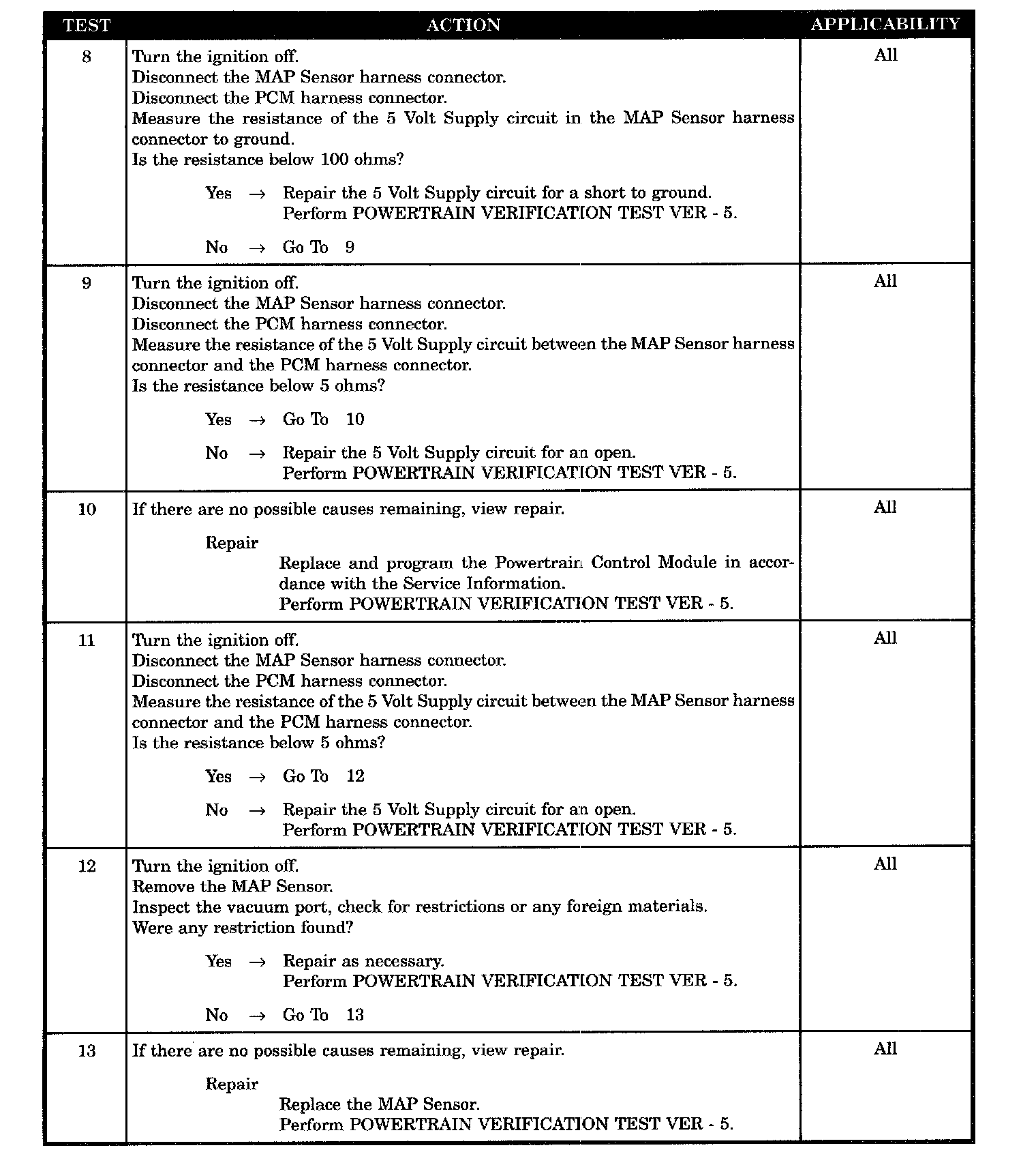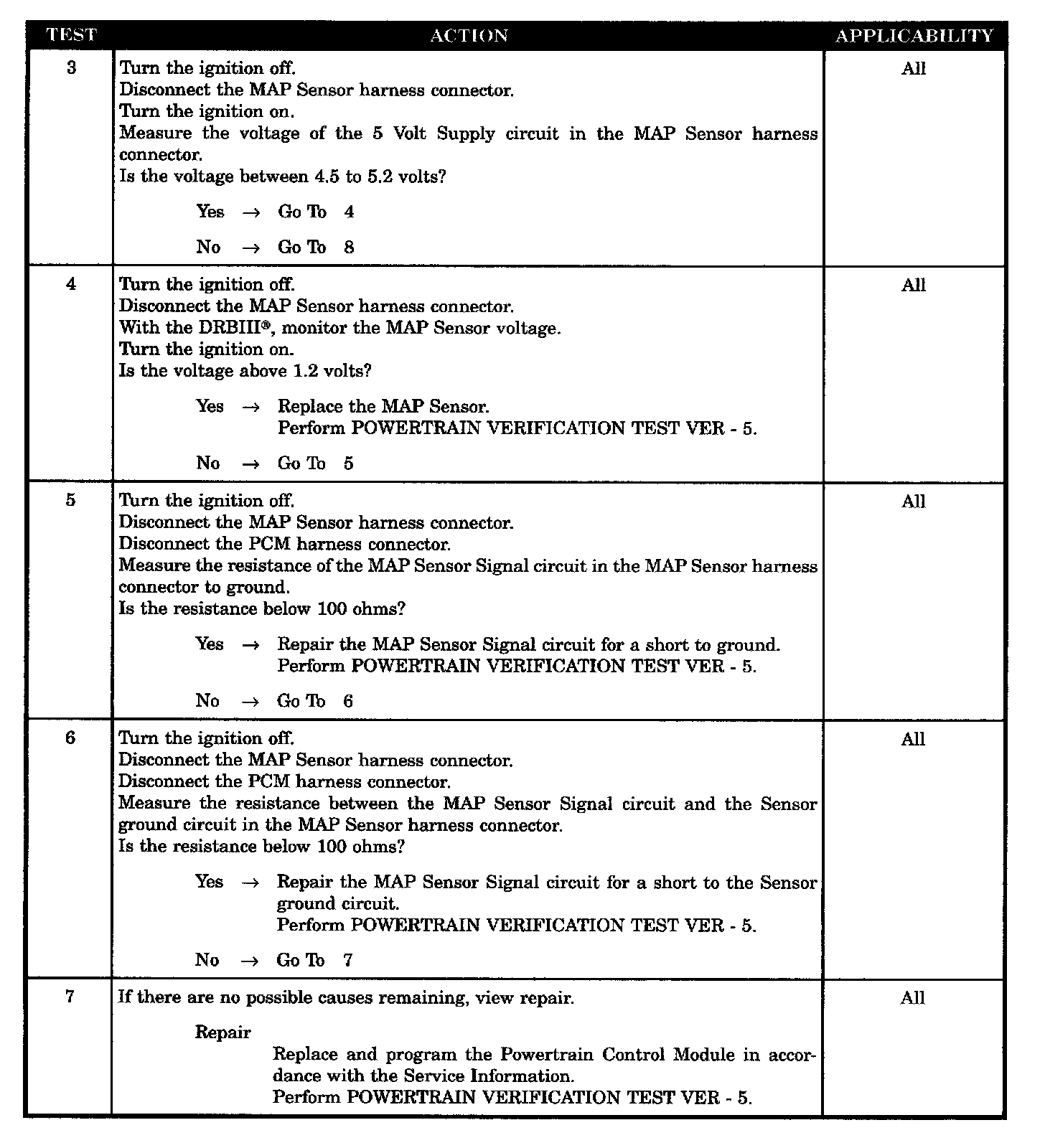 - MAP sensor signal circuit shorted to sensor ground circuit