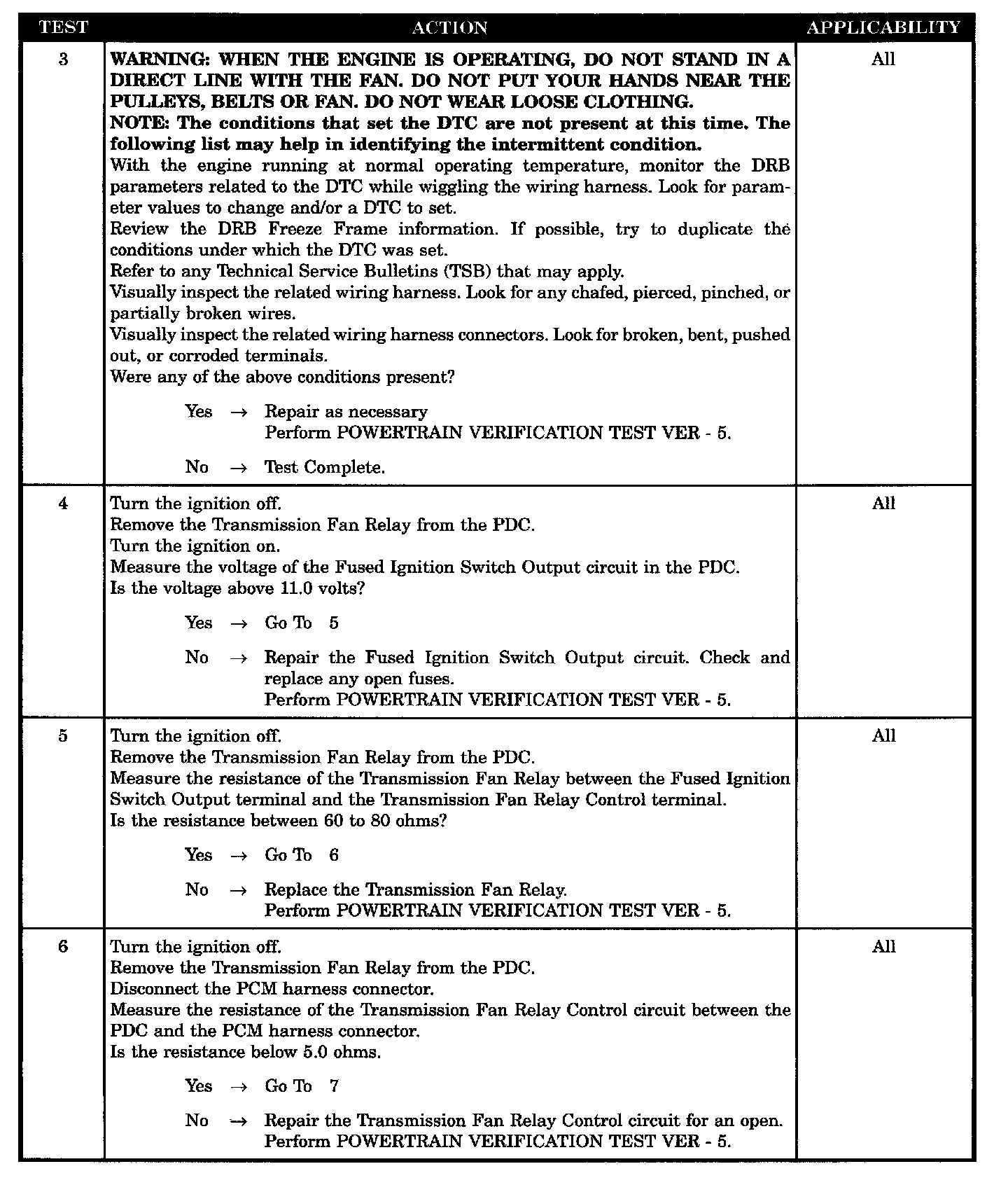 - Transmission fan relay control circuit short to ground