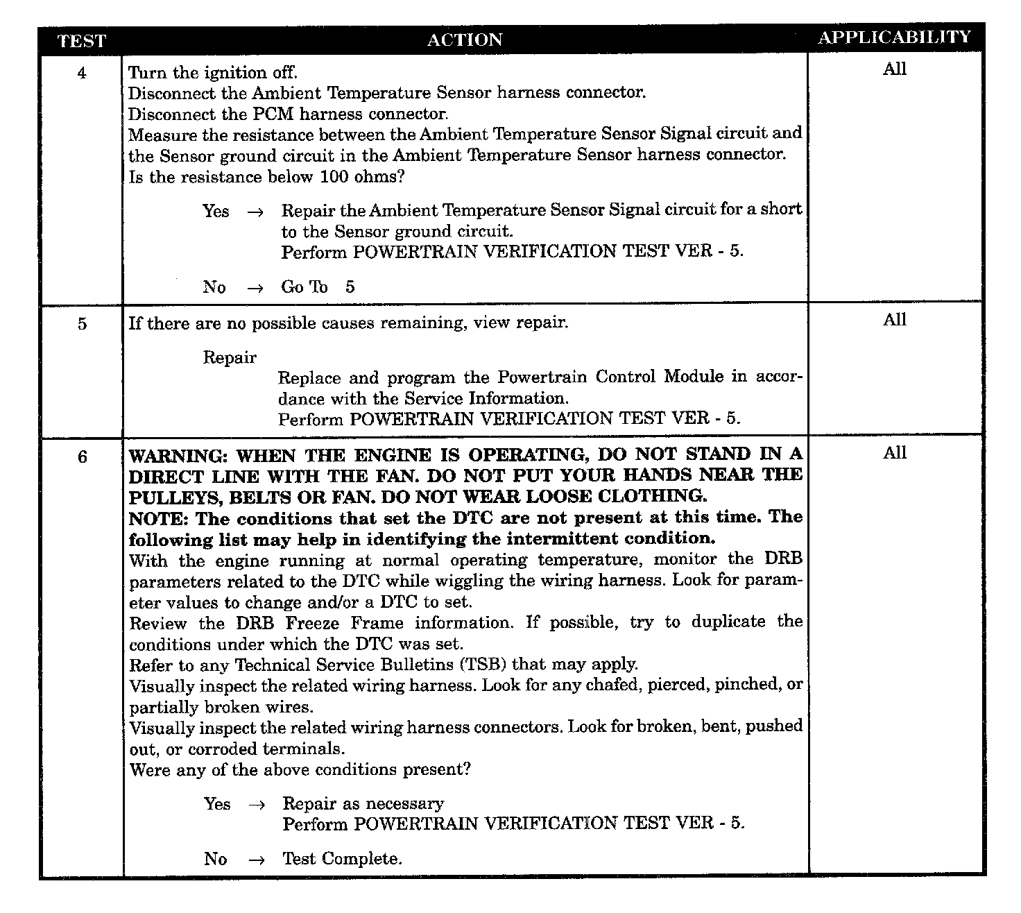 Ambient Temperature Sensor is less than 0.098 volt at the PCM for 3 seconds.