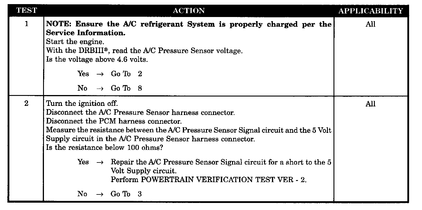 - A/C pressure sensor signal circuit shorted to 5 volt supply circuit