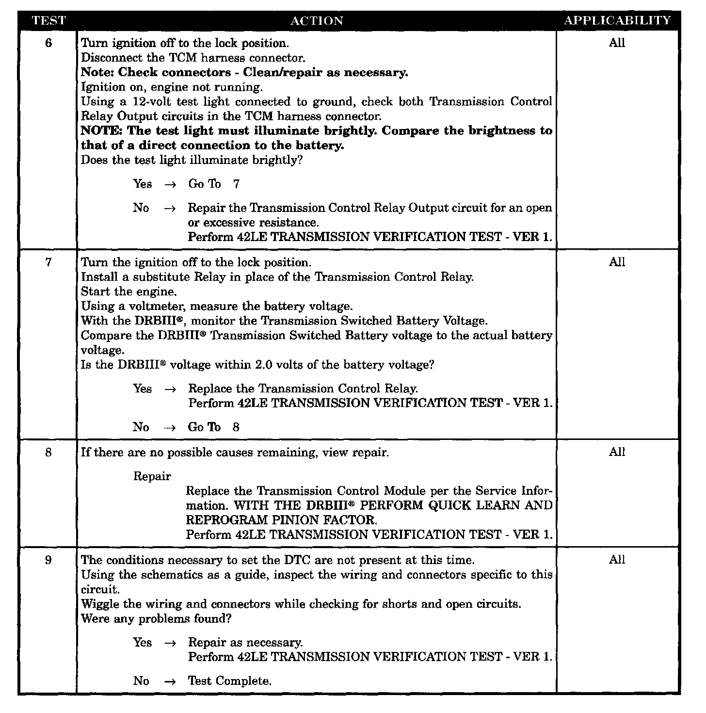 TRANSMISSION CONTROL RELAY OUTPUT TO TCM OPEN OR HIGH RESISTANCE