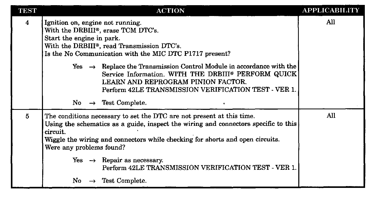 When Monitored and Set Condition: P1717 - NO COMMUNICATION WITH THE MIC