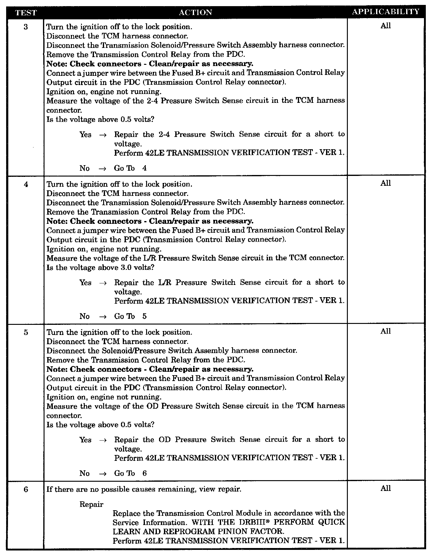 Set Condition: This code is set if the Transmission Control Module (TCM) senses voltage on any of the pressure switch inputs prior to the TCM energizing the relay.
