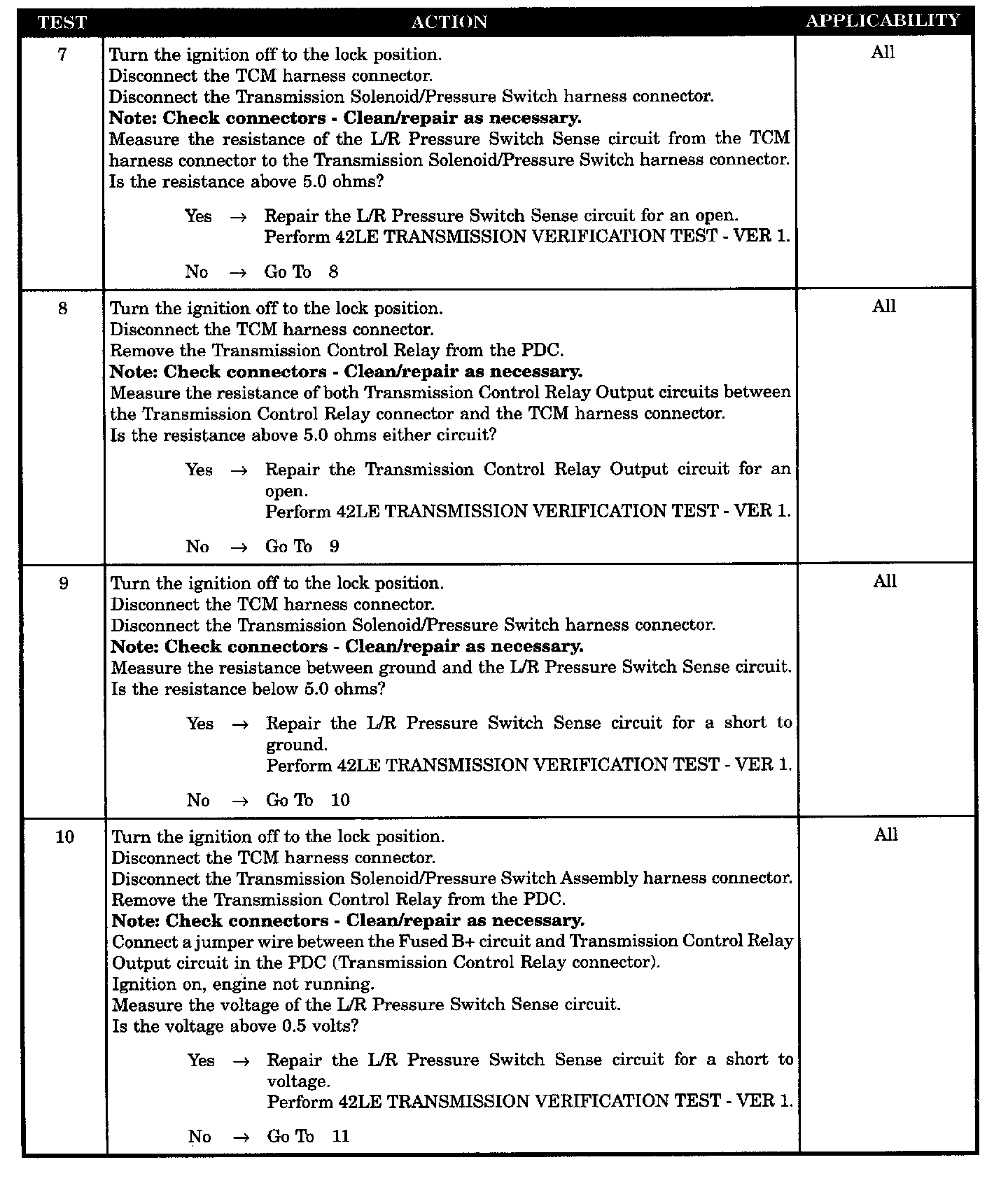 TRANSMISSION CONTROL RELAY OUTPUT CIRCUIT OPEN