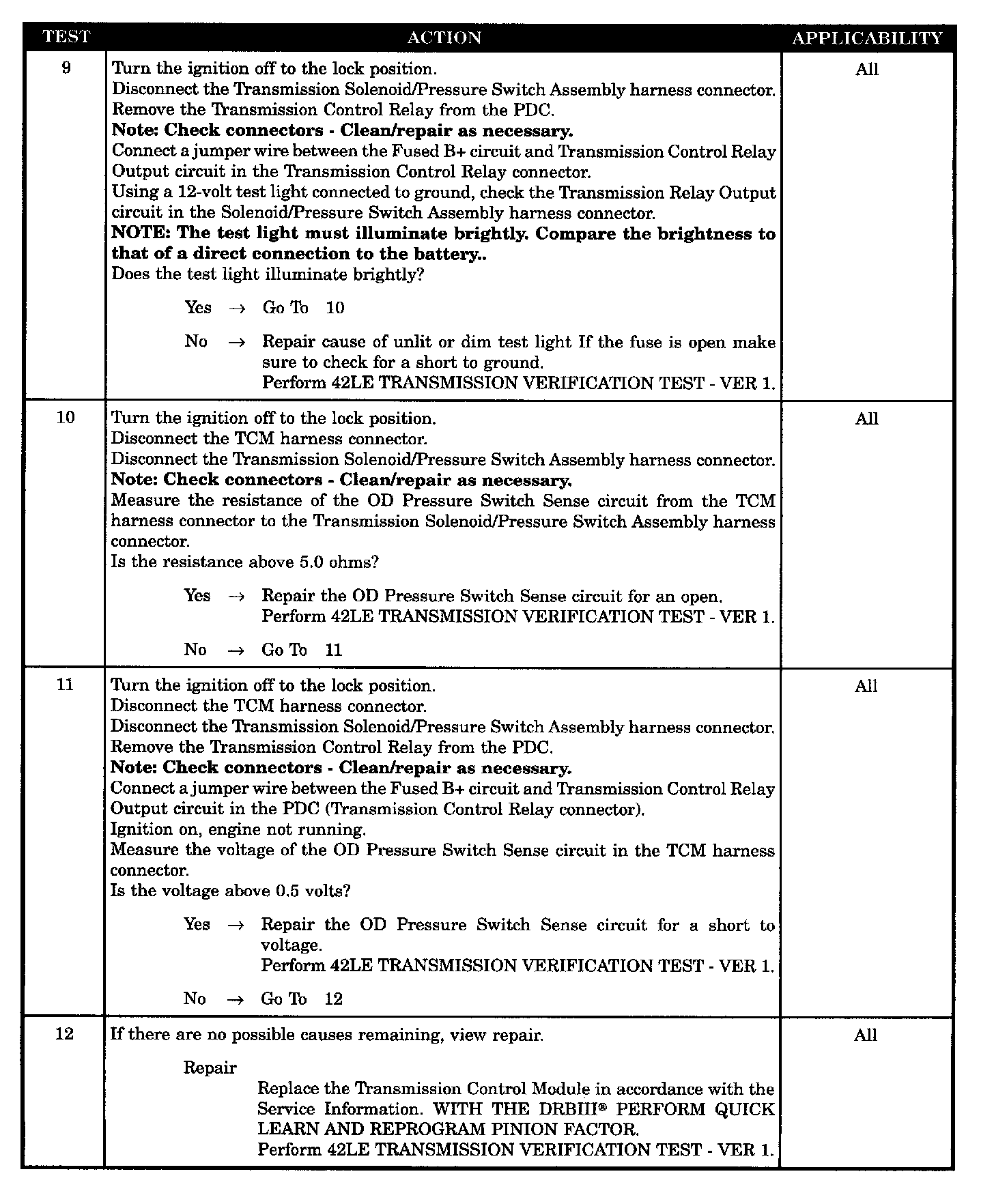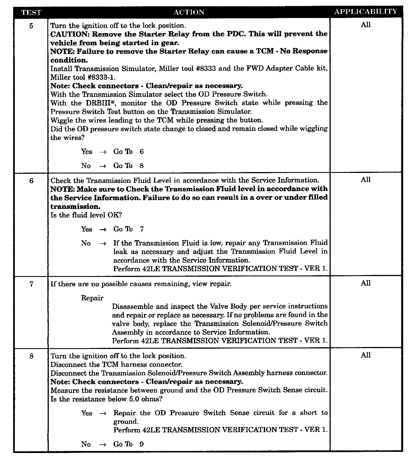 OD PRESSURE SWITCH SENSE CIRCUIT SHORT TO GROUND