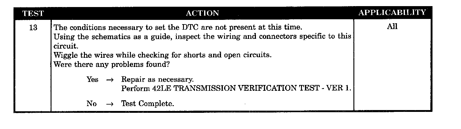 TRANSMISSION RELAY OUTPUT CIRCUIT OPEN