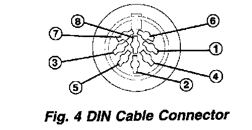 III. Make sure the DIN cable is connected to the radio and radio is turned ON and operating. Check for battery voltage at Pins 6 and 7 using Pin 8 for ground. Refer to DIN Cable Connector Pin Call-Out table and.