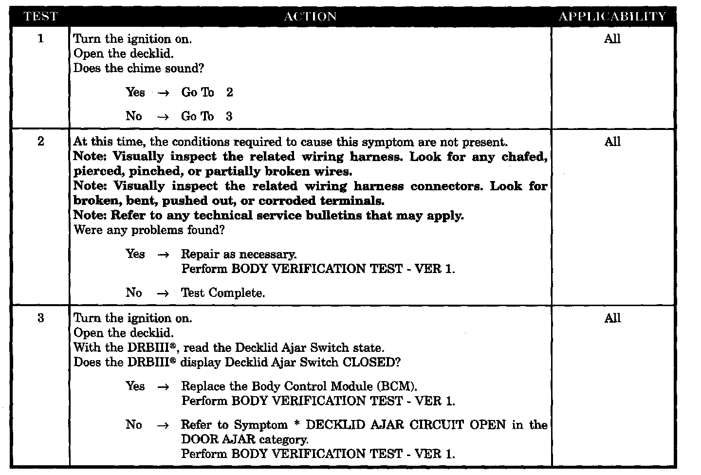 CHIME INOPERATIVE WITH DECKLID OPEN