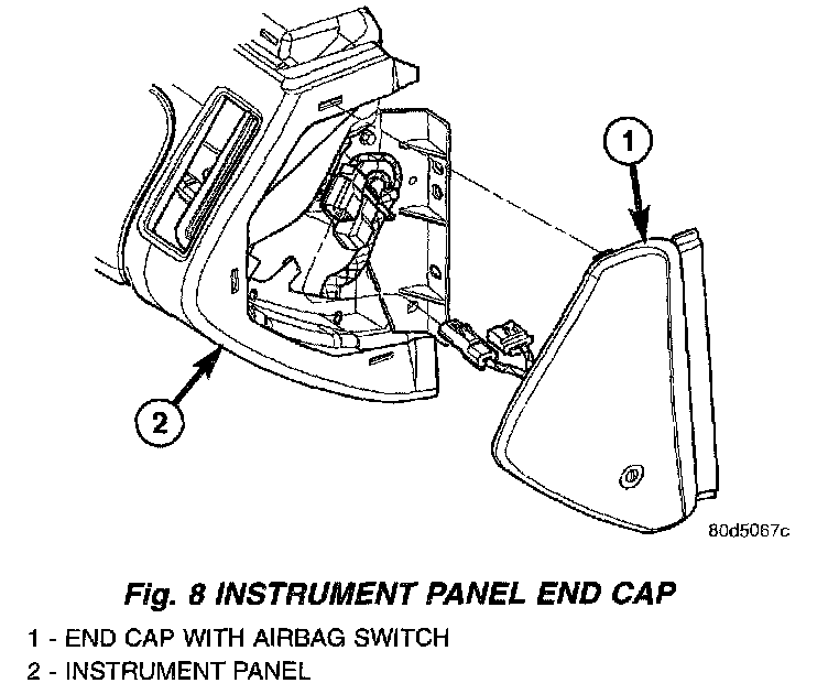 4. Using a trim stick (special tool #C-4755) or equivalent, gently pry out on the right instrument panel end cover to disengage clips (Fig. 8).