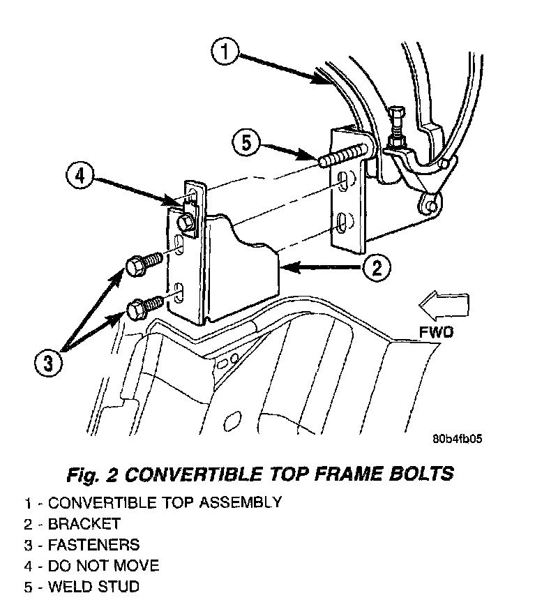 4. Remove bolts attaching convertible top to body (Fig. 2).