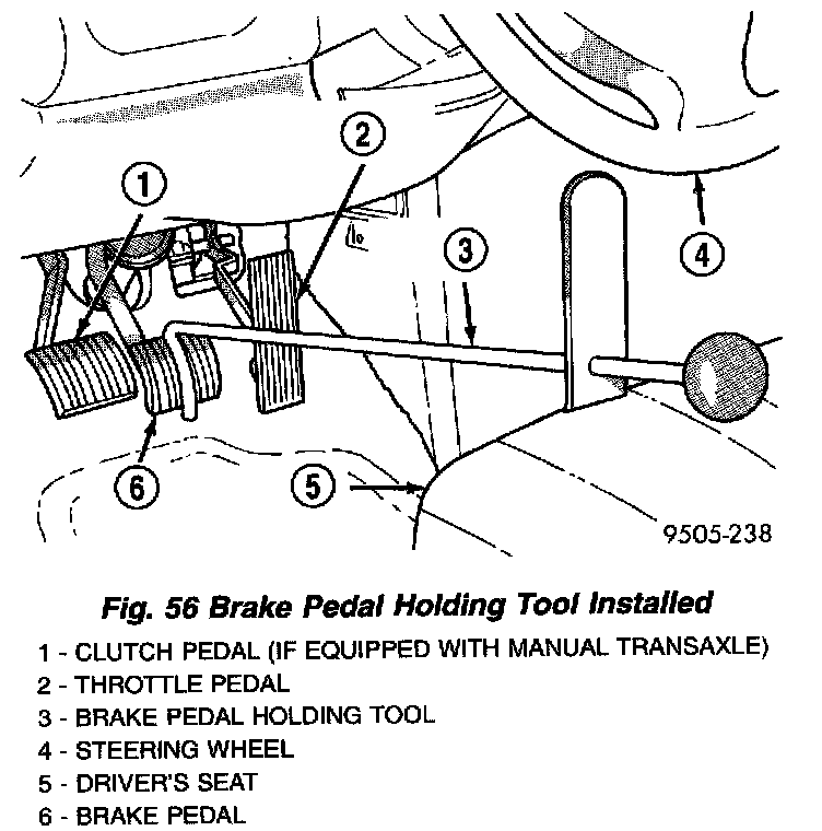 10. Remove the brake pedal holding tool from the brake pedal.