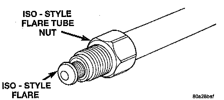 CAUTION: All ISO style tubing flares are of metric dimensions. When performing any service procedures on vehicles using ISO style tubing flares, metric size tubing of 4.75 mm MUST be used with metric ISO tube flaring equipment.