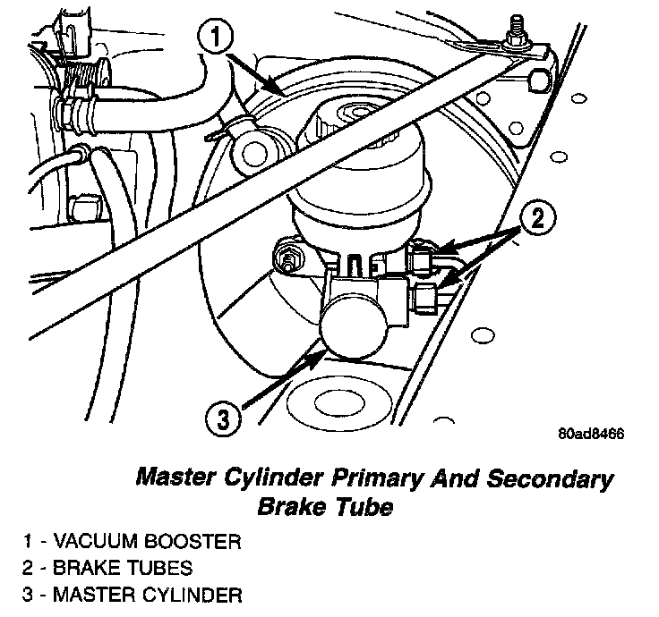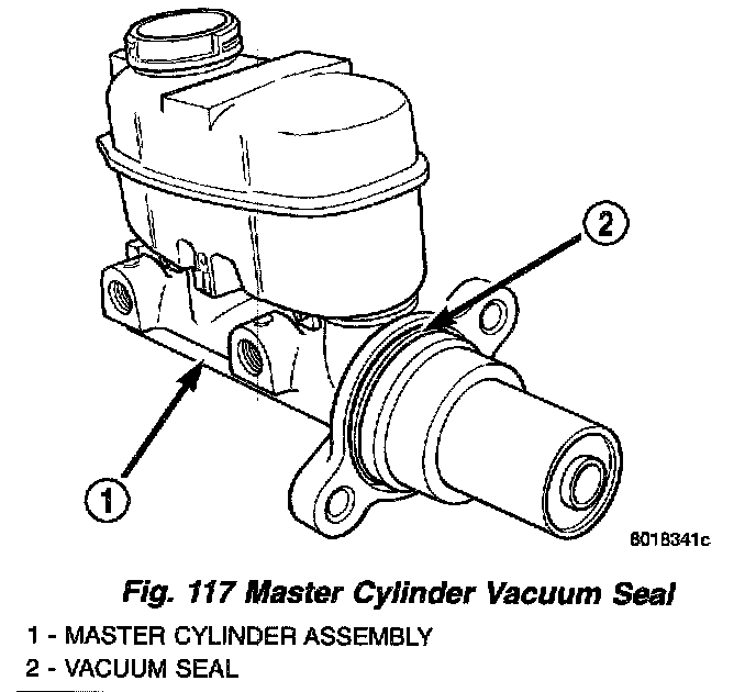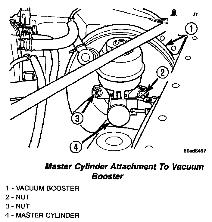 REMOVALCAUTION: Reserve vacuum in the power brake booster must be pumped down (removed) before removing master cylinder from booster. This is necessary to prevent the booster from sucking in any contamination as the master cylinder is removed. This can be done simply by pumping the brake pedal, with the vehicle's engine not running, until a firm feeling brake pedal is achieved.
