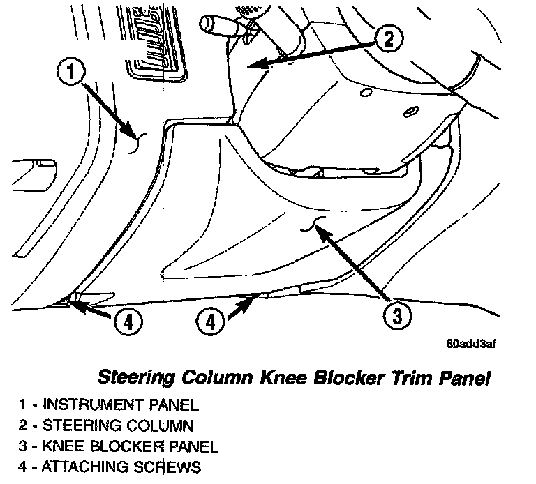8. Remove the steering column knee blocker trim panel from the instrument panel.