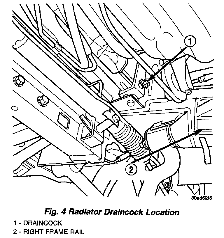 1. Open radiator drain located at the lower right side of radiator. Do Not Use pliers to open draincock.
